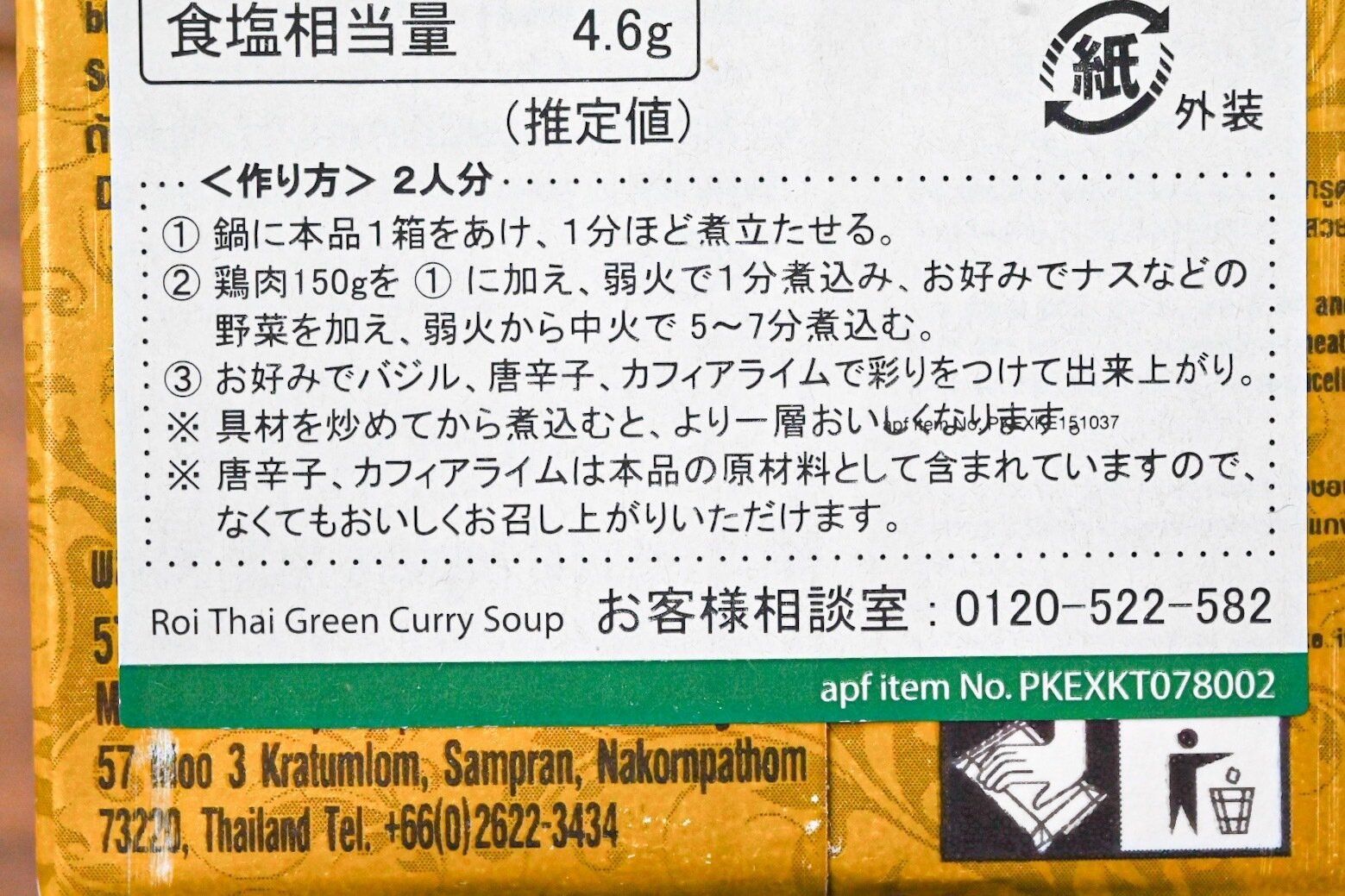 「ロイタイ グリーンカレー」 1パック