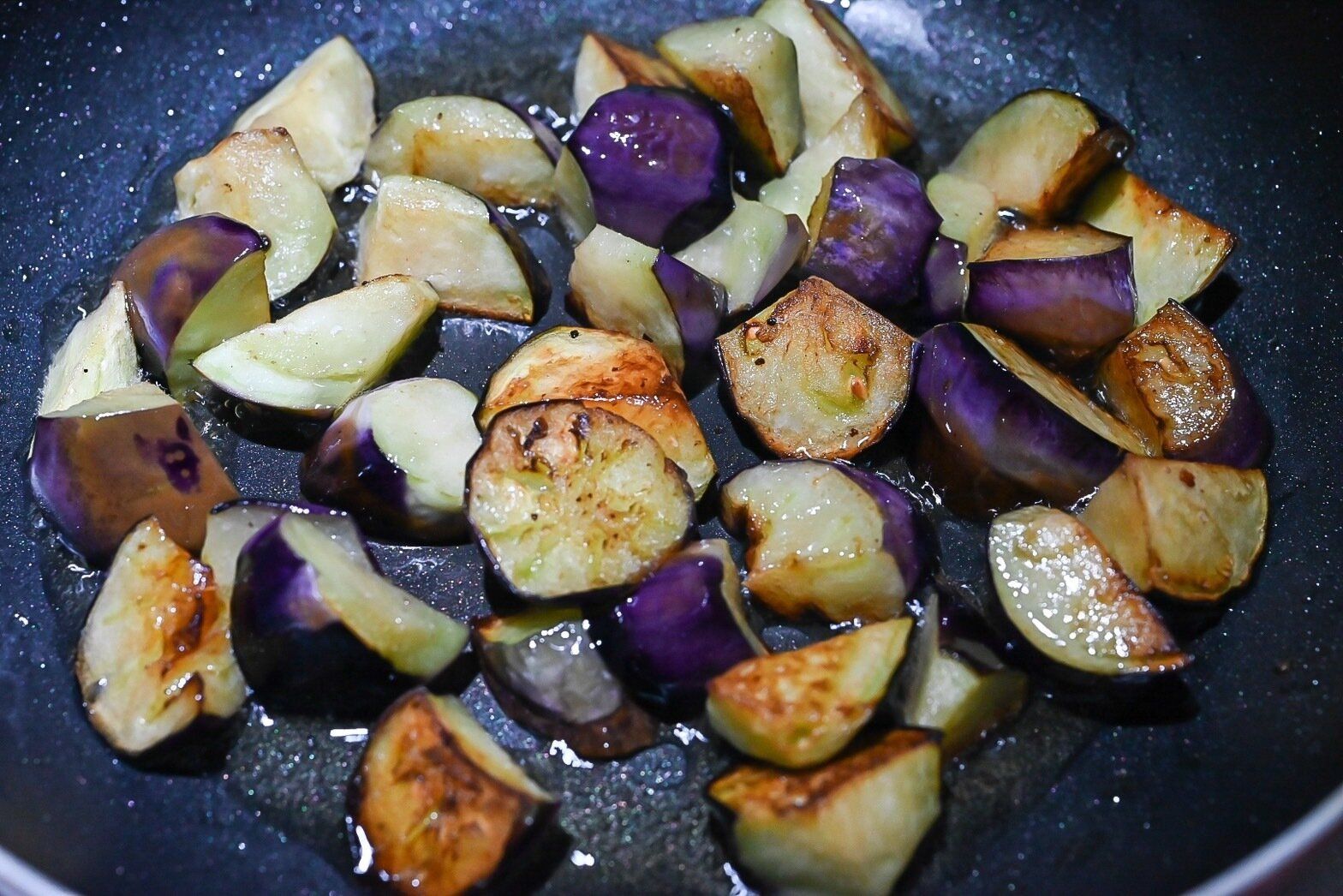 なすが油をしっかり吸うまで炒める。