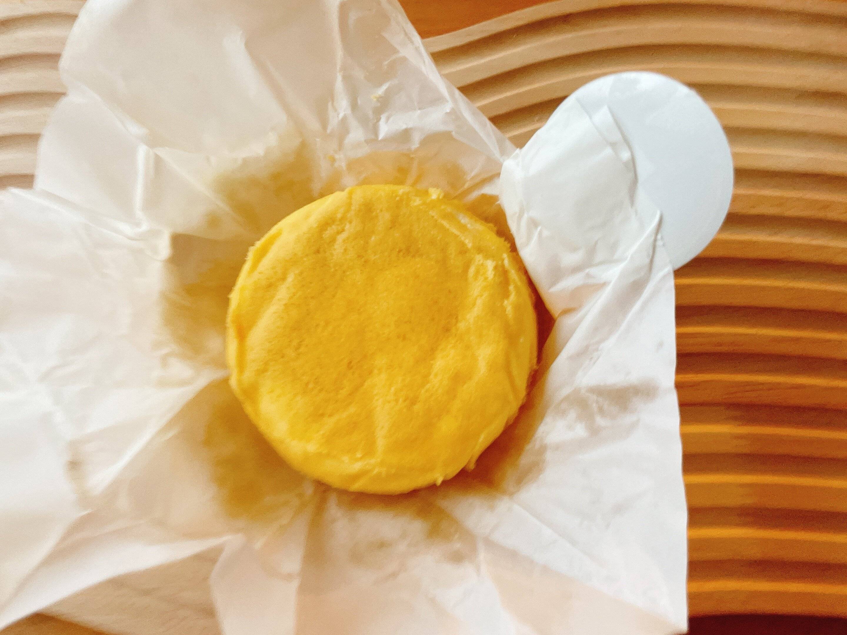 大きさは直径約8cm、高さ約4cmと小ぶりで1人でも食べられてしまうけど、カロリーが1つ515kcalあることを考えると、シェアしてもいいかな…というサイズ感です。
