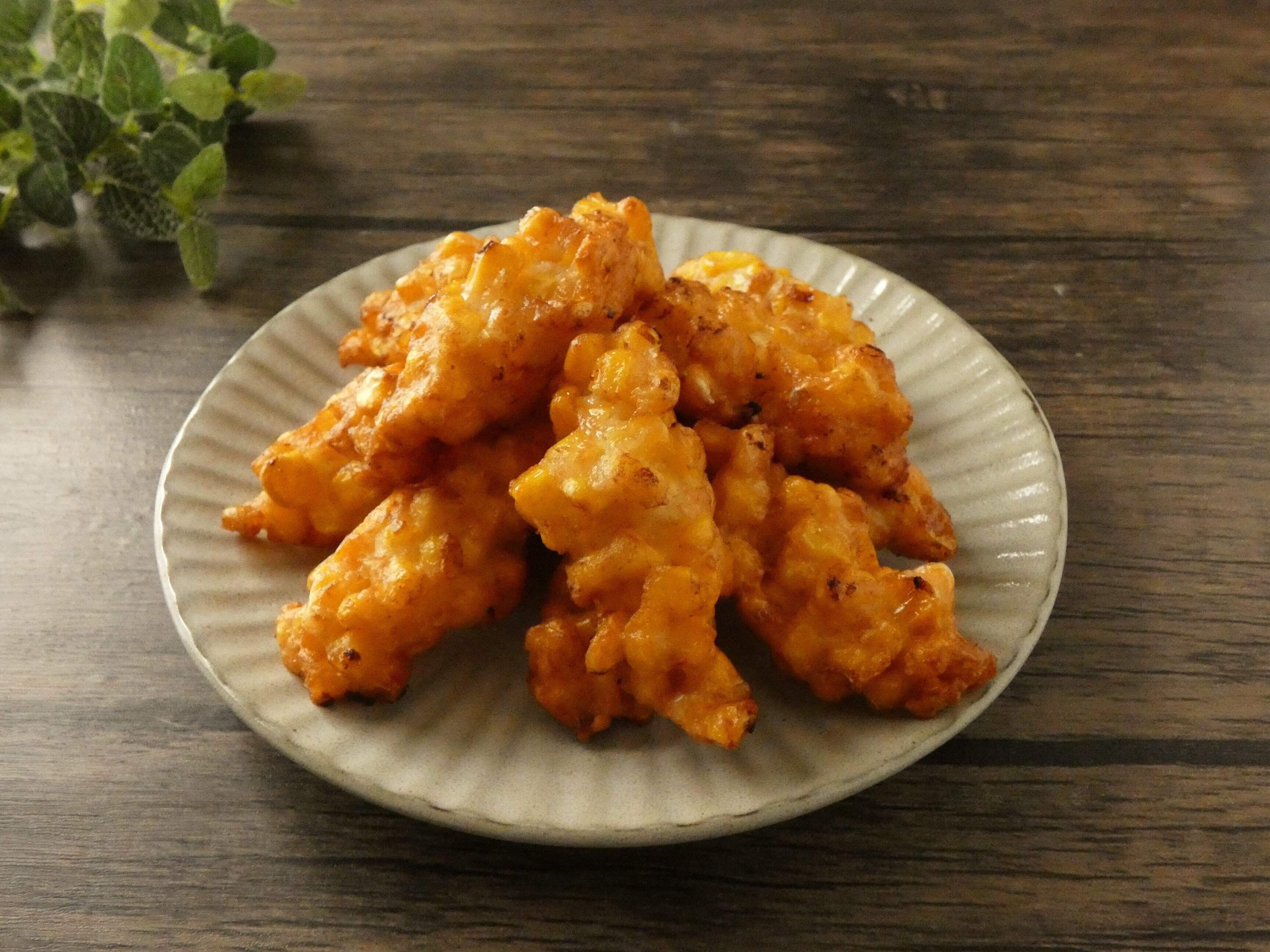 とうもろこしのプチプチ食感に、すり身が混ぜ合わせてあるのでジューシーでしっとり。とうもろこしの甘さとすり身の塩加減がバッチリで、香ばしさがたまらないです。
