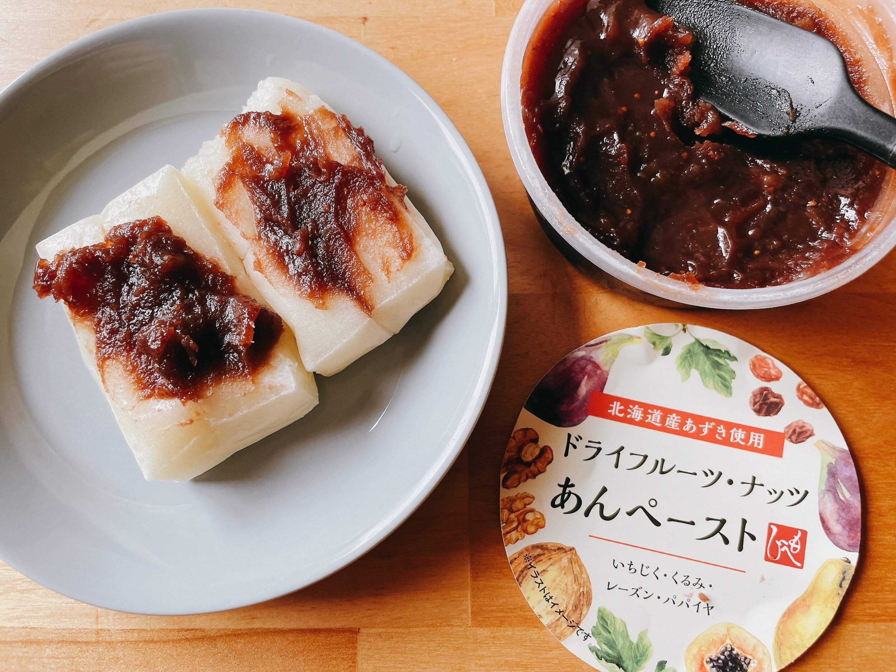 あんこペーストなのでおもちに合わせてみましたが間違いない組み合わせで、ドライフルーツとナッツの食感も加わり普通のあんこよりもおいしく食べられました。
