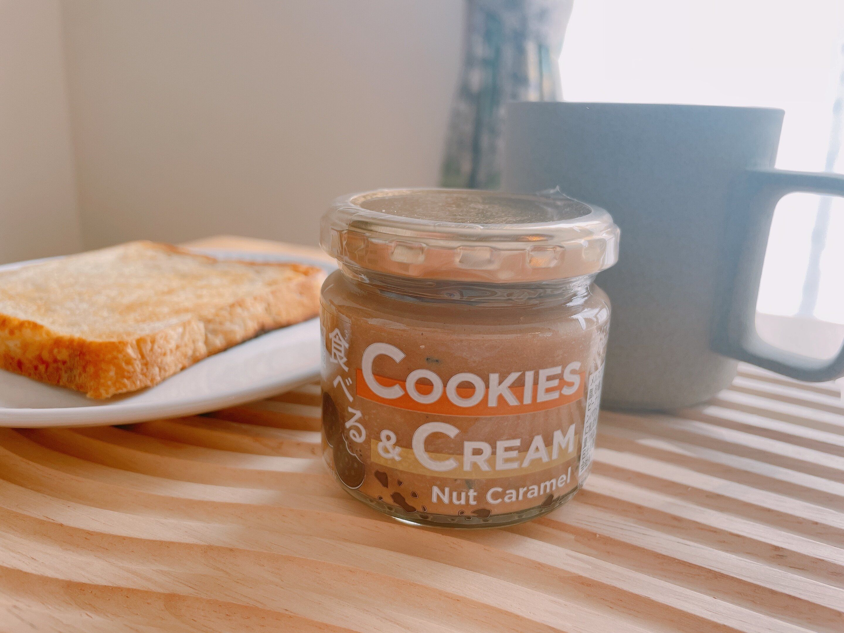 トーストした食パンに、たっぷりと塗って、ナッツやクッキーのザクザクした食感が新感覚です。