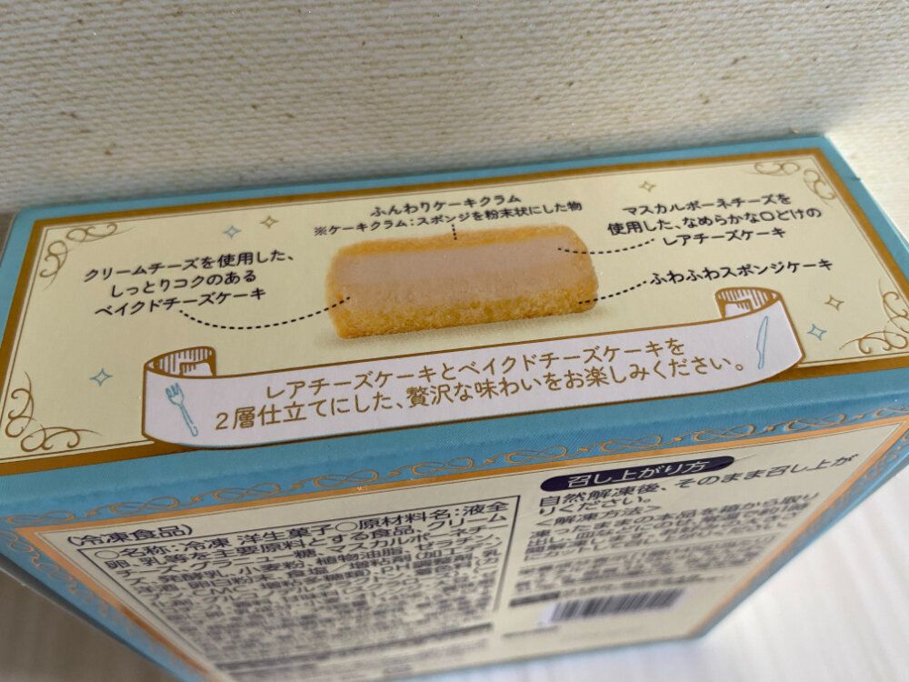 側面には魅力的なチーズケーキの説明書きが。洋菓子店などで売っていそうな高級感のあるチーズケーキ、さっそく筆者も購入してきました。