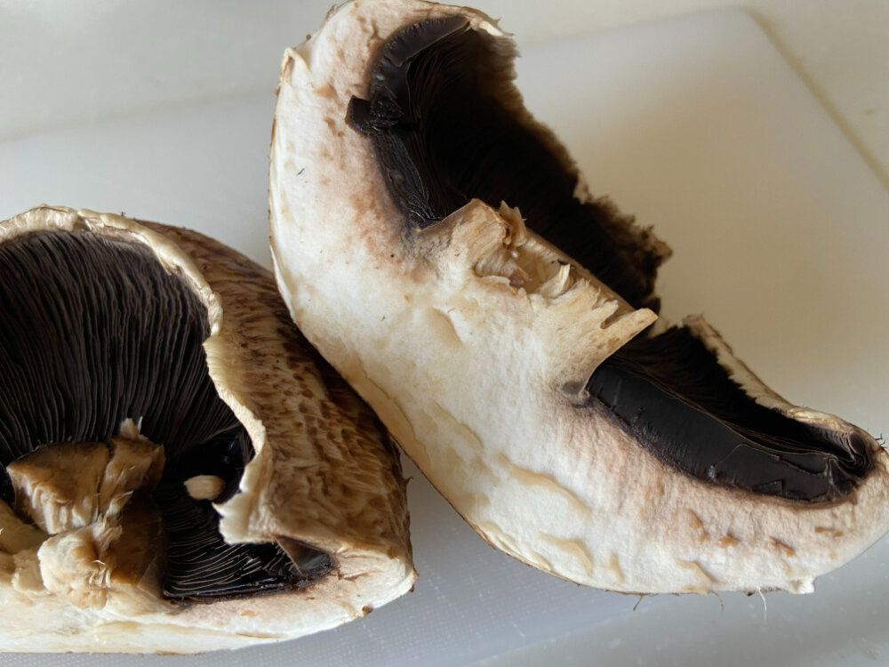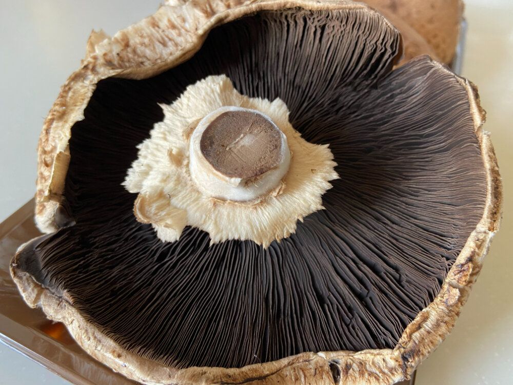 特別な品種ではなく、普通のマッシュルームを長い期間熟成させて、じっくり成熟させたものが「ポータベラマッシュルーム」として販売されているとのこと。