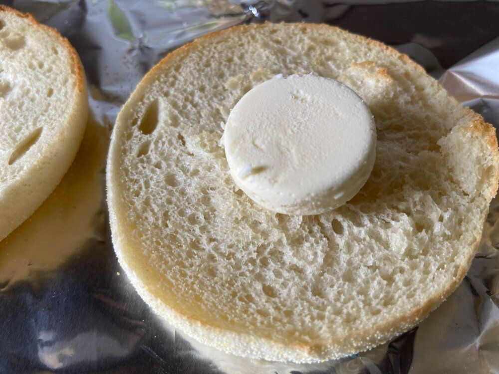 トースターで温めたイングリッシュマフィンにホイップバターをのせて。熱でじわっとホイップバターが溶けて染み込んでいくところを食べるのが最高!
