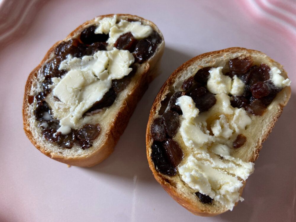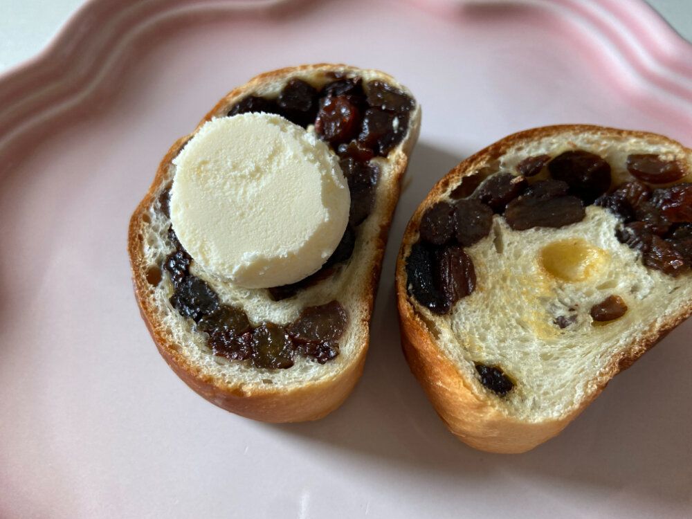 冷蔵庫に入れて半日ほどおいておくと、ドライフルーツの甘みがホイップバターに移ってたまらない味わいに!