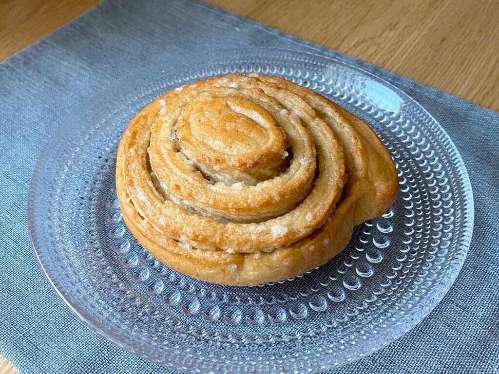 ひと口かじると想像以上にカリッとしていて驚きました。生地表面はカリカリ、カルダモンシュガーはザクザク、生地はふんわりとしていて、1度にさまざまな食感を楽しめます。