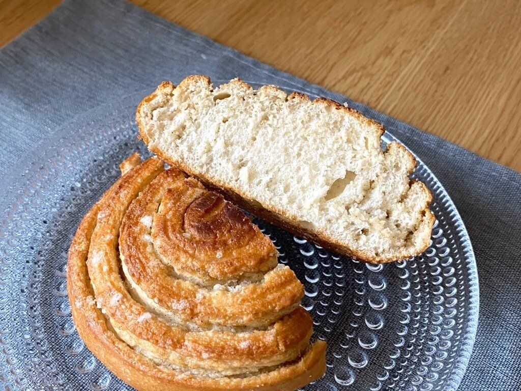 パン生地は噛むたびにカルダモンの爽やかな風味と小麦の香りがひろがります。カルダモンは強すぎず優しく香る程度ですが、全体的に甘さが抑えられた素朴な味なのでカルダモンの香りが主役という印象。