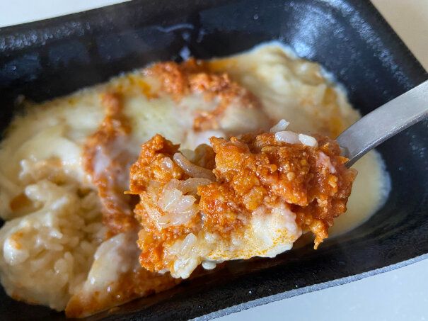 ほろほろと崩れる柔らかいチキンのトマト煮込みは、旨みもしっかりありつつ酸味も感じられて、そこに濃厚でミルキーなホワイトソースがとにかくたっぷり!