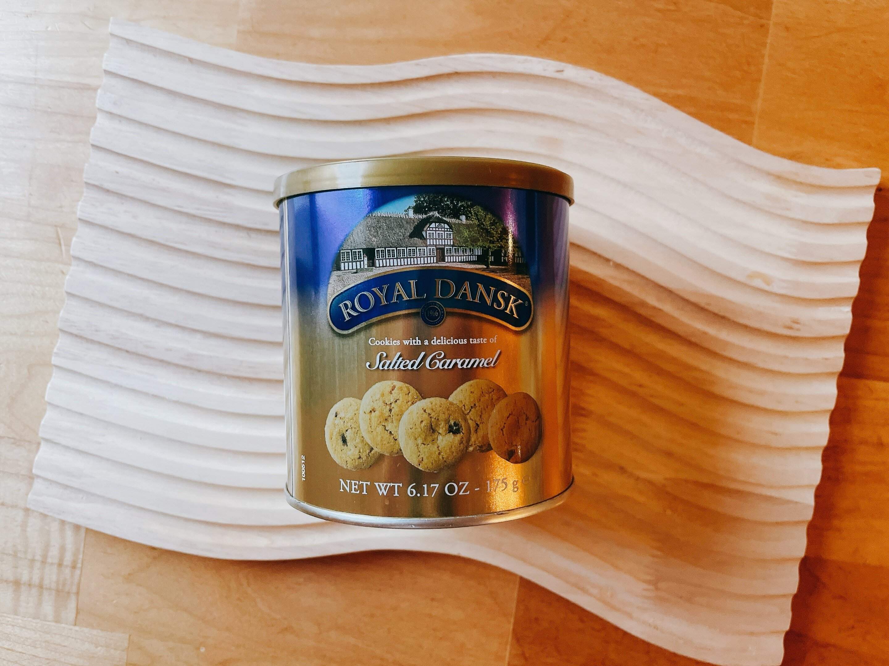 デニッシュミニバタークッキー(375円)と、デニッシュ塩キャラメルクッキー(343円)があり、缶のデザインはほとんど同じ。個人的には塩キャラメルクッキーの塩気が、特にお気に入りです。