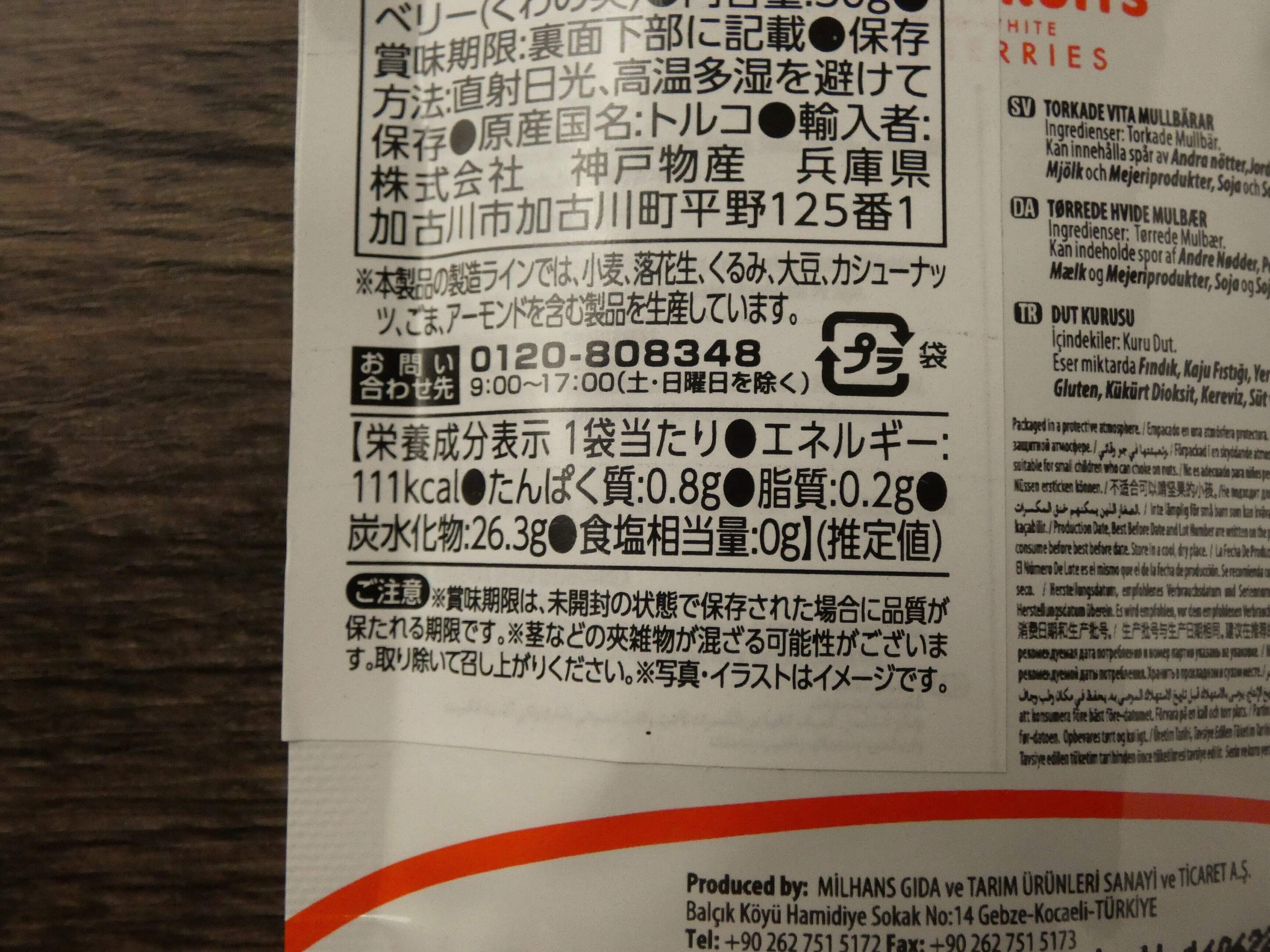 業務スーパー「ホワイトマルベリー(くわの実)」は84円。1袋にたっぷり入ってこの値段はコスパ抜群です。