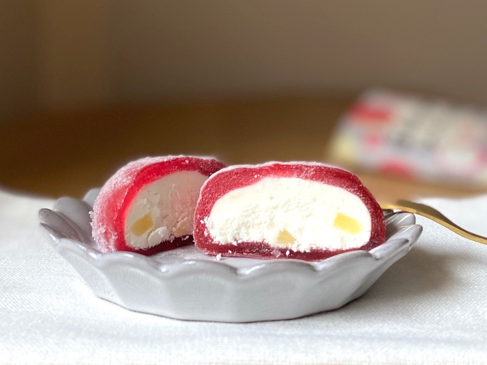 もへじの冷凍大福シリーズと言えば、以前から販売されている「北海道産いちごのクリームわらび大福」もオススメです。