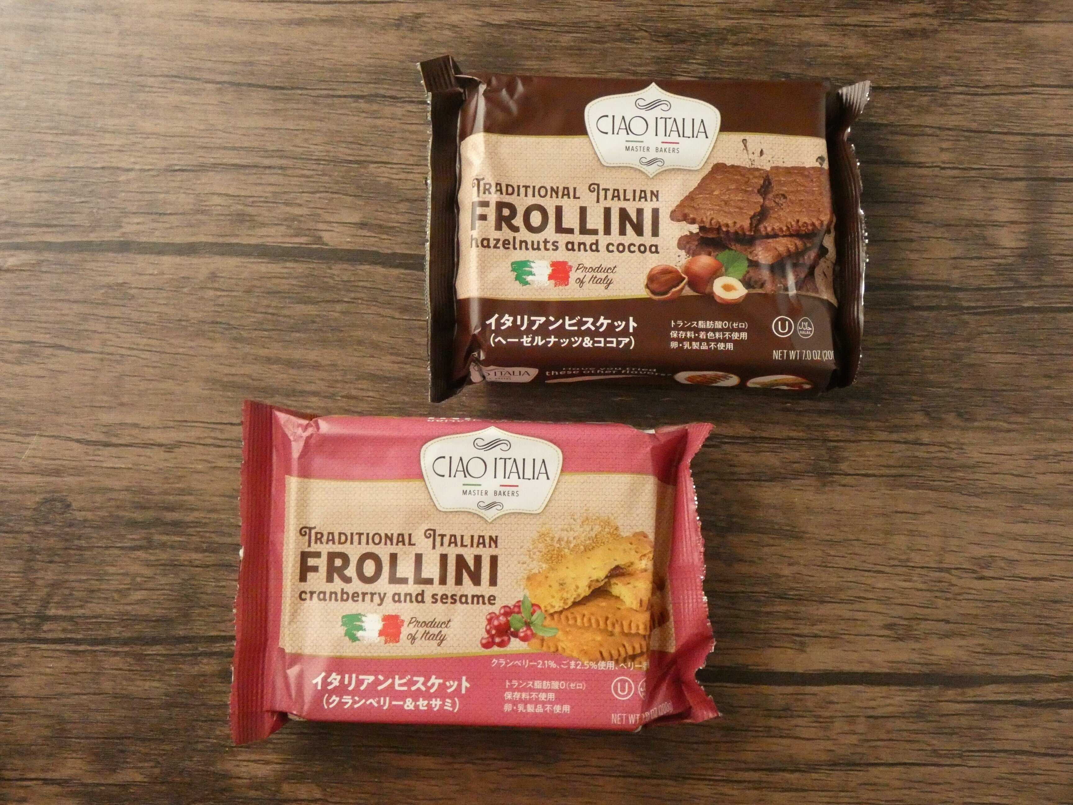 イタリアンビスケット「ベーゼルナッツ&ココア」と「クランベリー&セサミ」