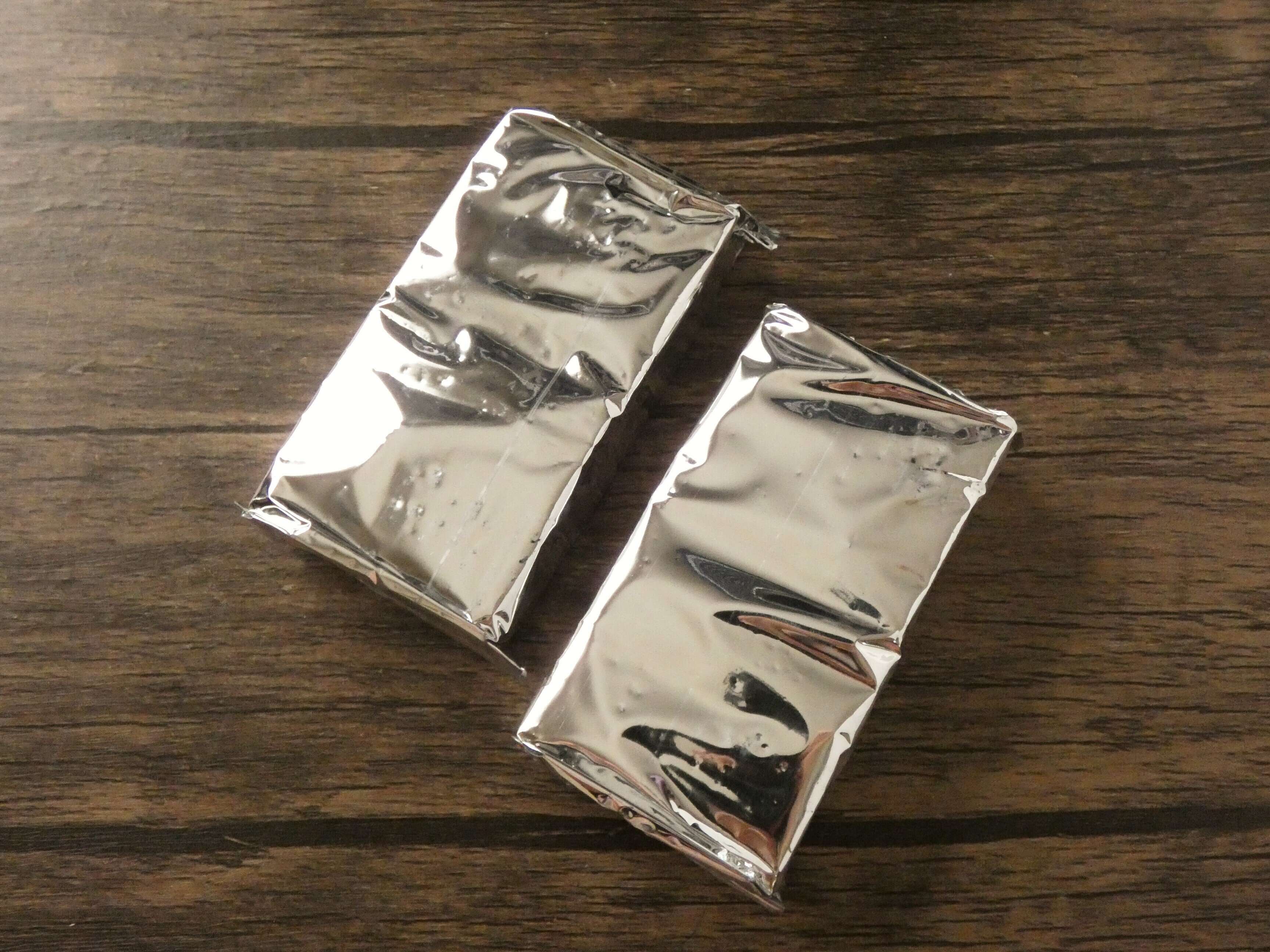 袋を開けると銀色のパッケージが2個入っていて、パッケージ1個にビスケット10枚入りです。
