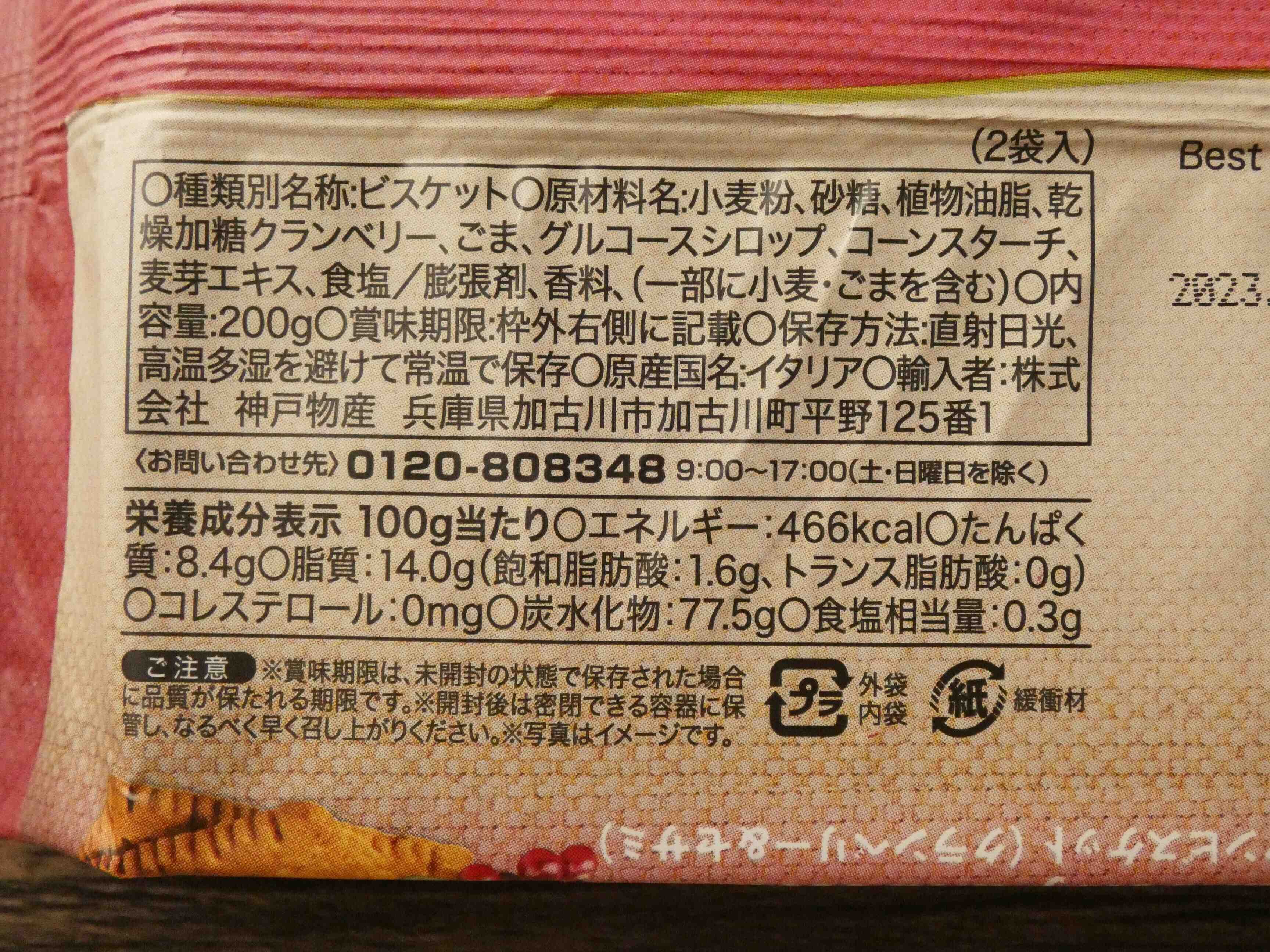 イタリア直輸入のイタリアンビスケット「ベーゼルナッツ&ココア」と「クランベリー&セサミ」は138円。