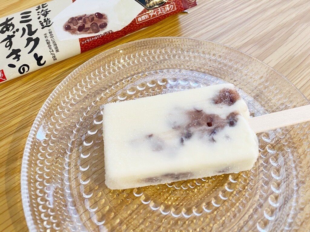 外側のミルクアイスをかじると濃厚な練乳の甘さがひろがります。中の粒あんはあずきの風味がよく上品な味わいで、ミルクアイスの甘さと絶妙にマッチします。全体的に甘さが強いですが、クドさがなくスッキリとした味わいなので最後までおいしく食べられます。