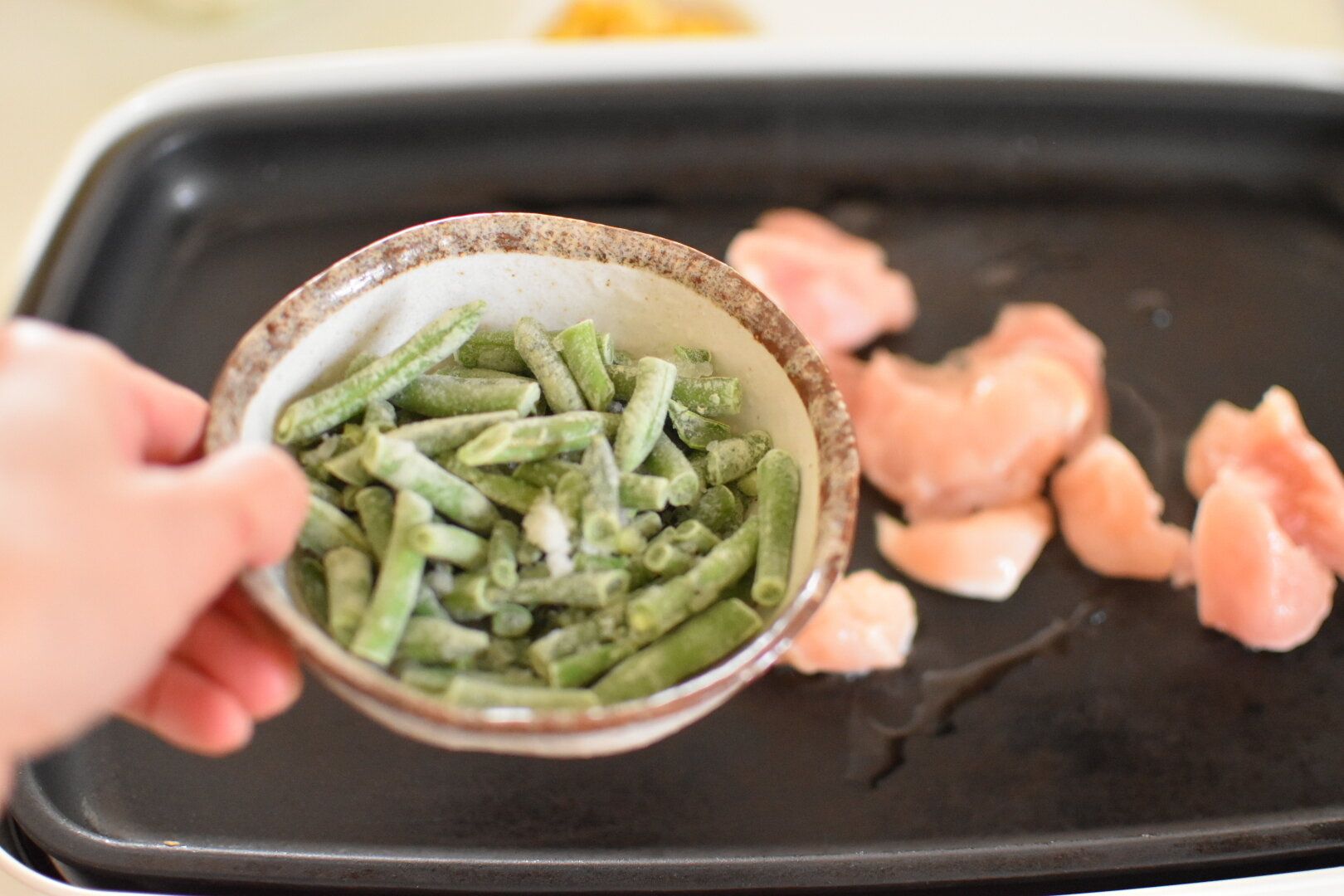 ・鶏肉を一口サイズにカットしておく(カットして冷凍した鶏肉も可)