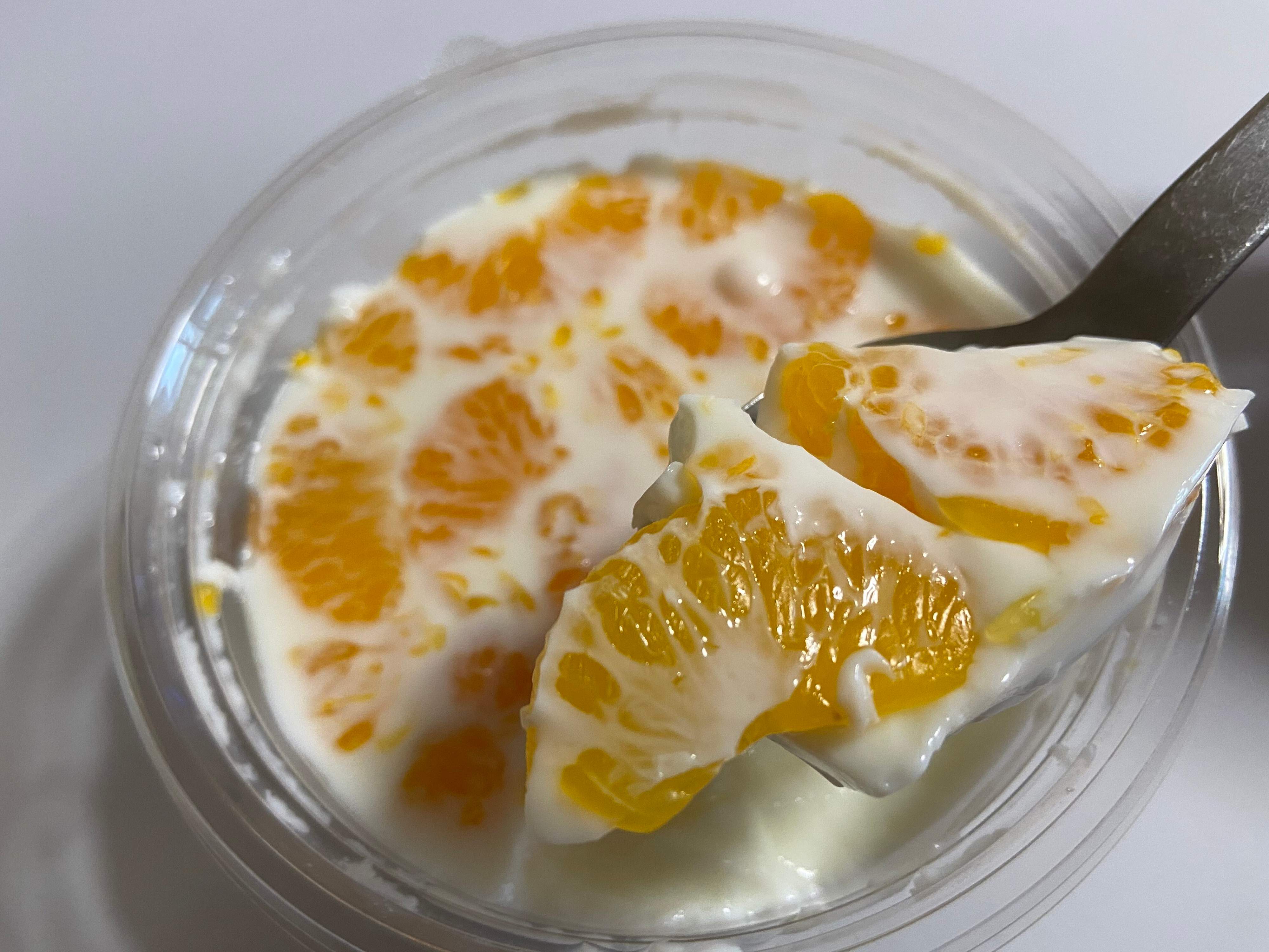 ミルクゼリーの上にはジューシーなみかんがたっぷり!甘酸っぱさがたまりません。