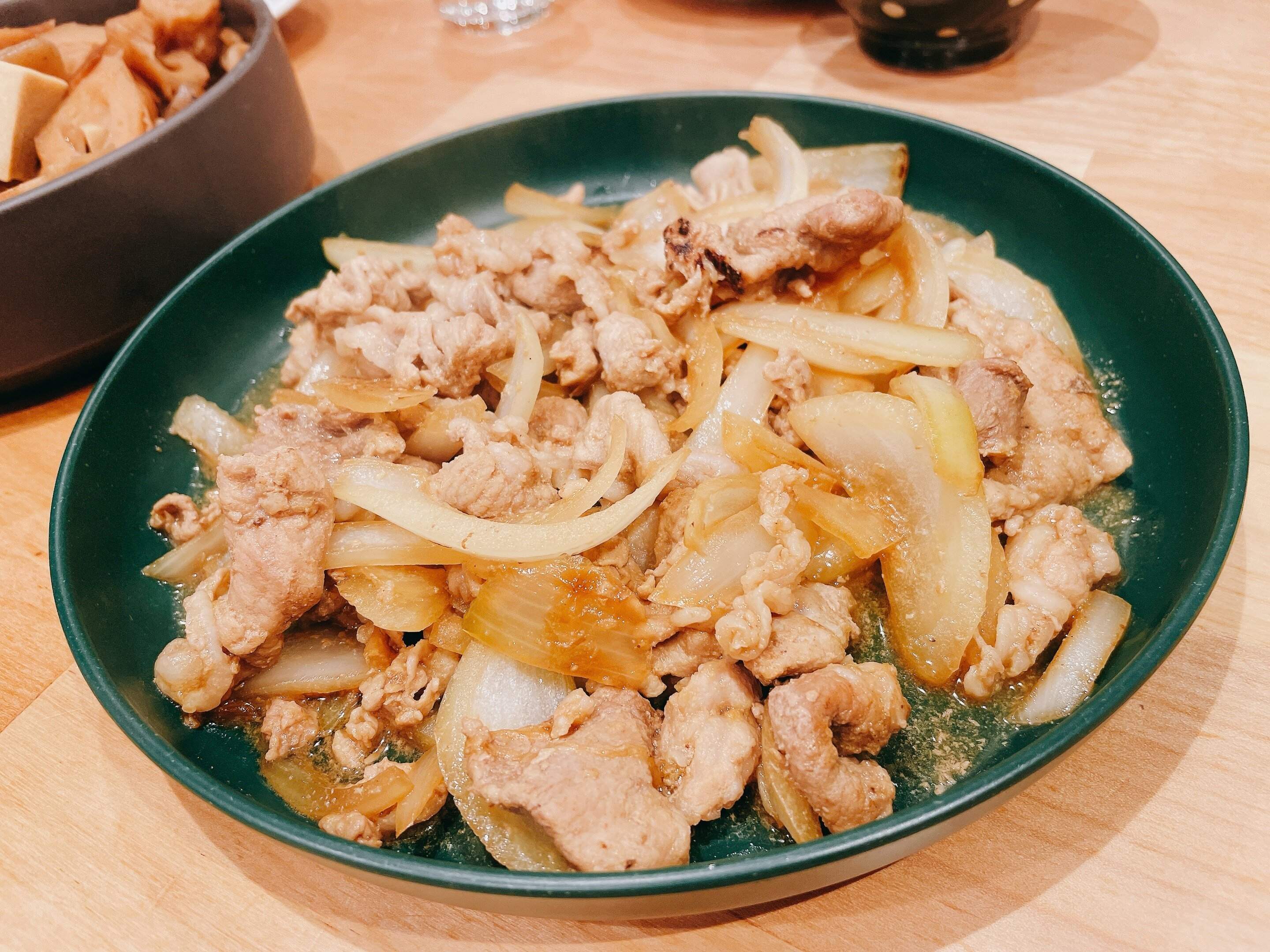 フライパンに油を入れて、玉ねぎ、漬け込んでいた豚肉を加えて火が通ったら完成です。