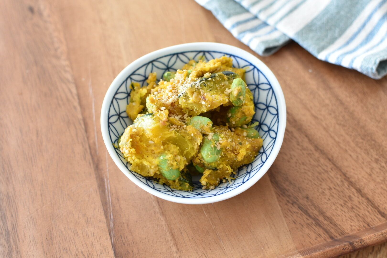 1.かぼちゃはざっくりつぶしておき、解凍したむき枝豆とAを加えてしっかり和える