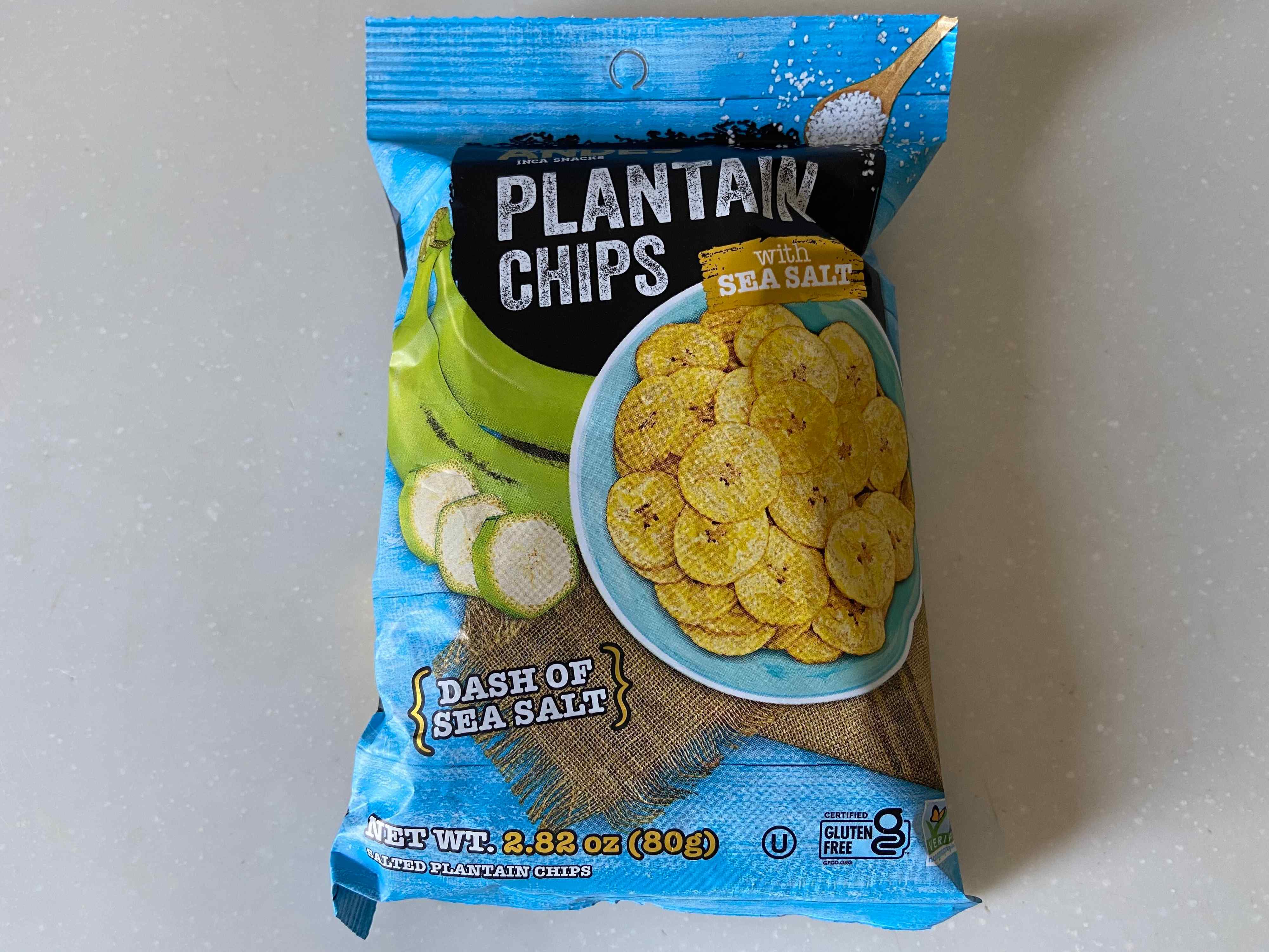 まずはこちら「プランテンチップス シーソルト」(購入時価格:149円)、ペルー産のお菓子です。