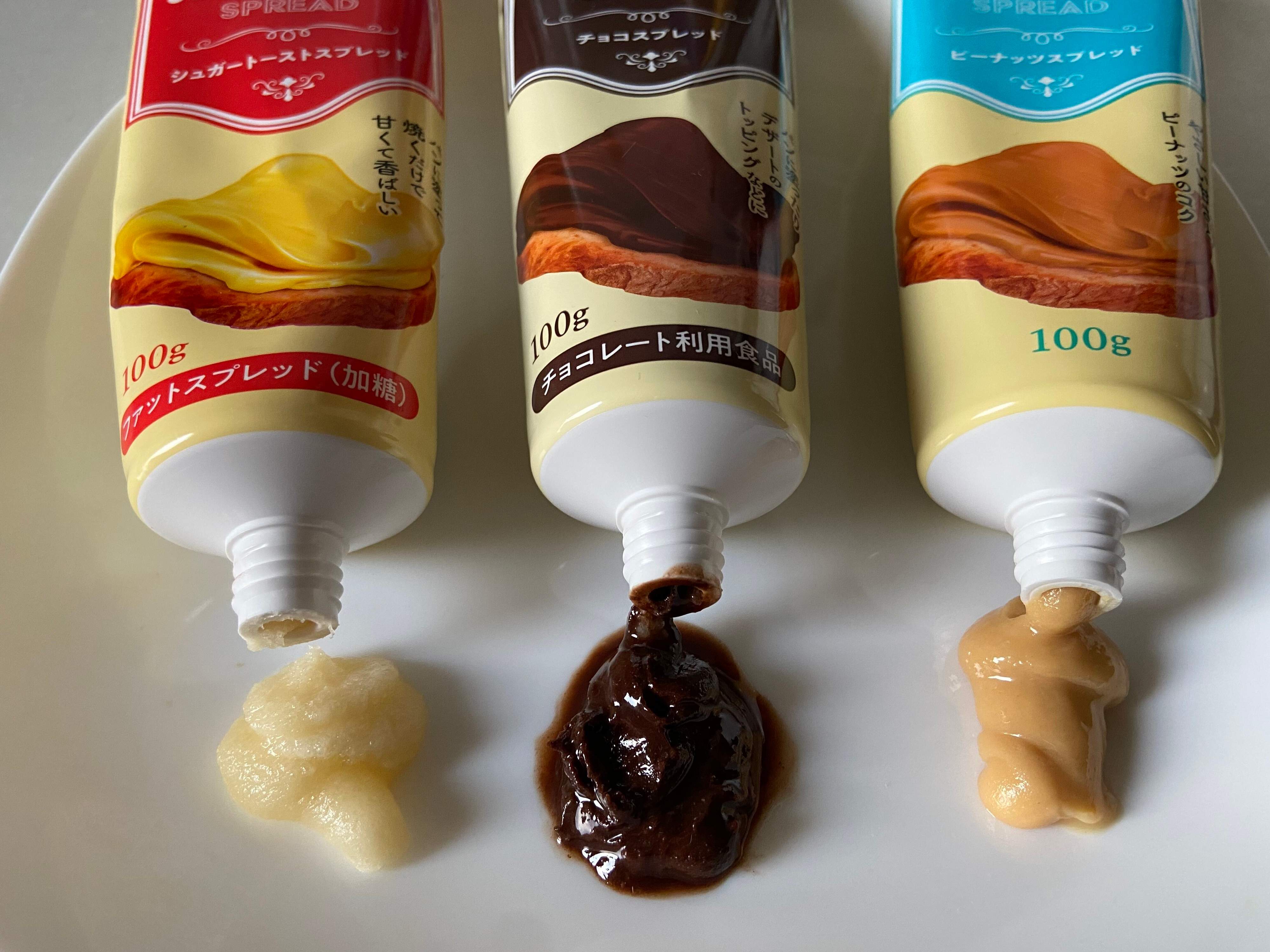 朝はパン派のかたたちにもぴったりの使いやすいチューブタイプで、塗りやすいスプレッド。購入時価格は、各196円でお手ごろです。
