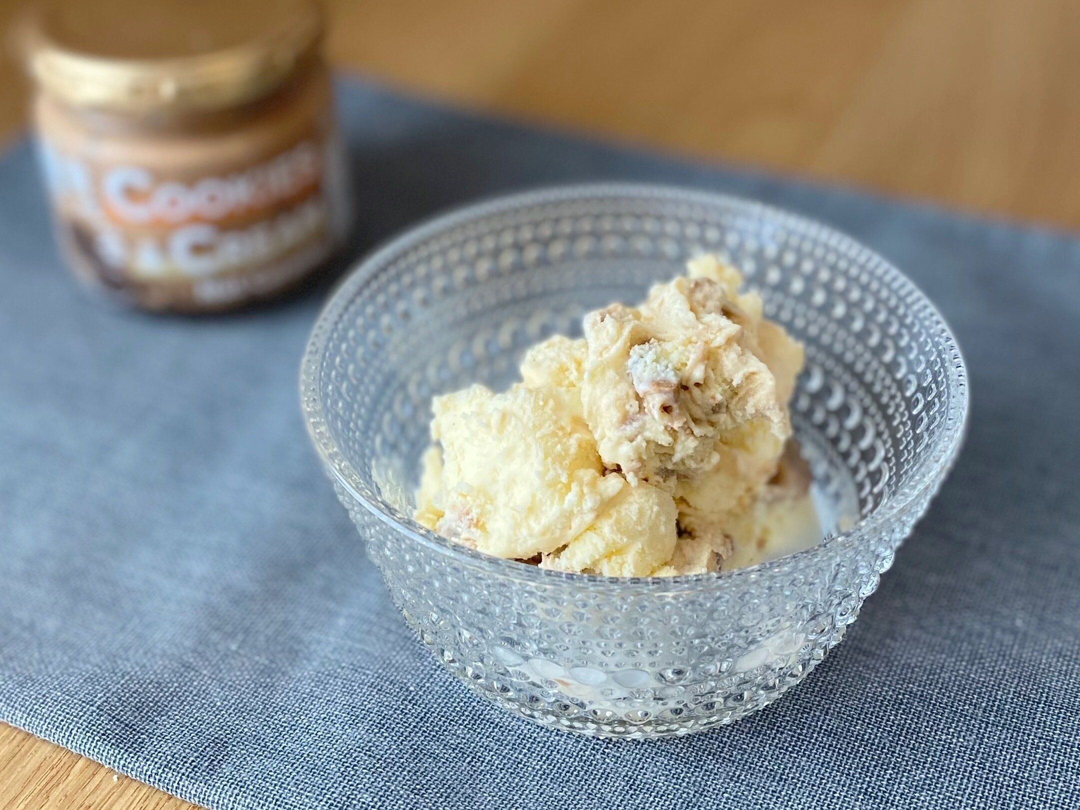 公式ホームページでも紹介されていましたが、バニラアイスとの相性が抜群です。シンプルなバニラアイスが、濃厚なキャラメル風味アイスに大変身。クッキーとナッツの食感も相まって、専門店で食べるような高級感のある味わいを楽しめますよ。