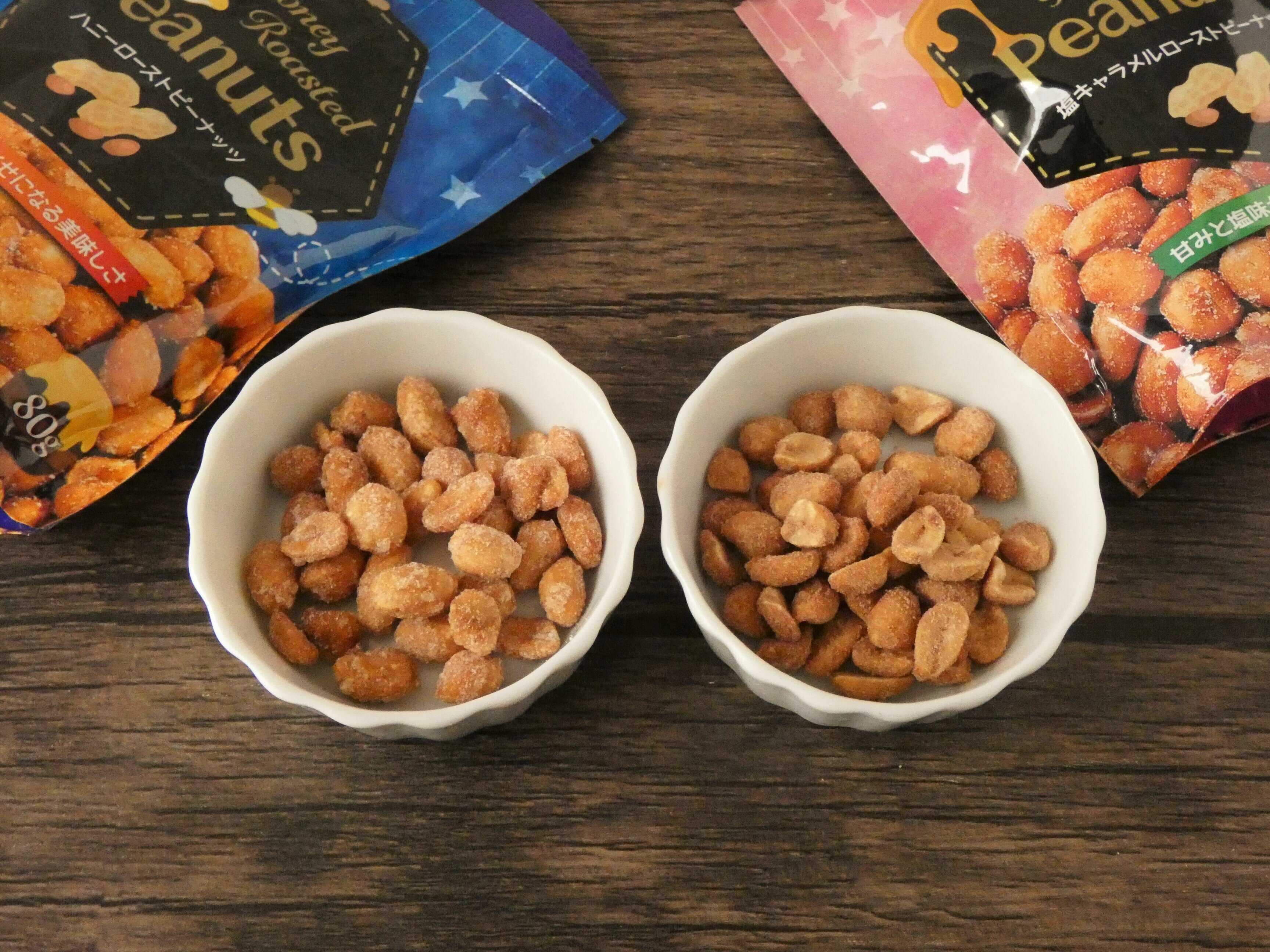 「ハニーローストピーナッツ」と「塩キャラメルローストピーナッツ」