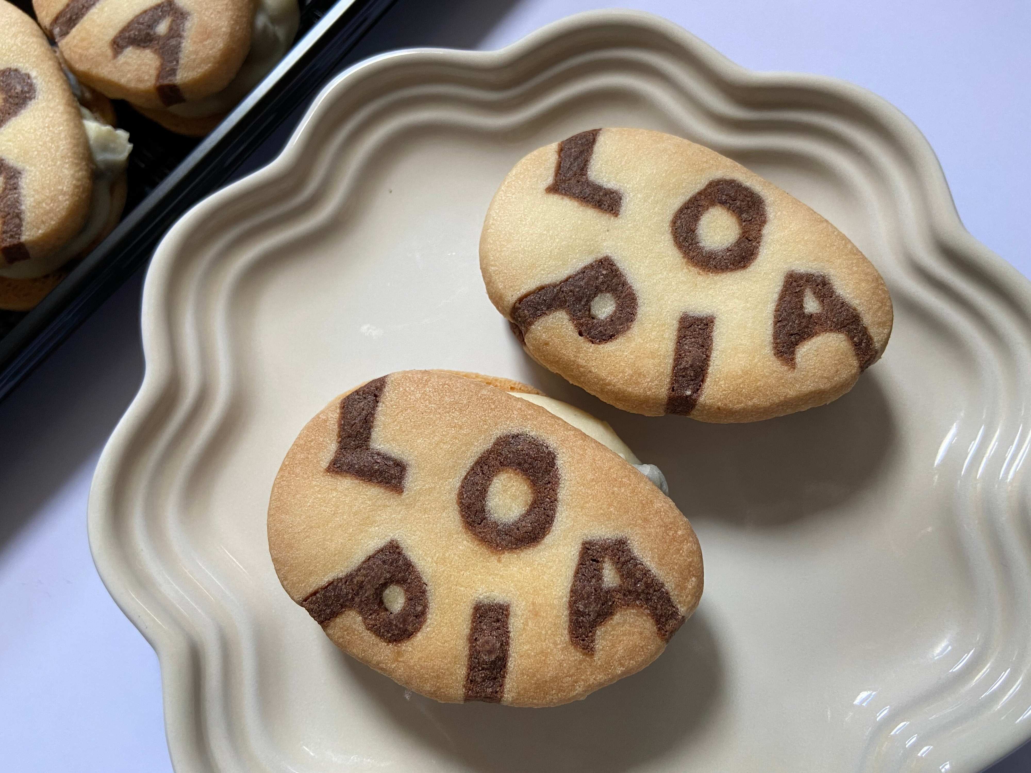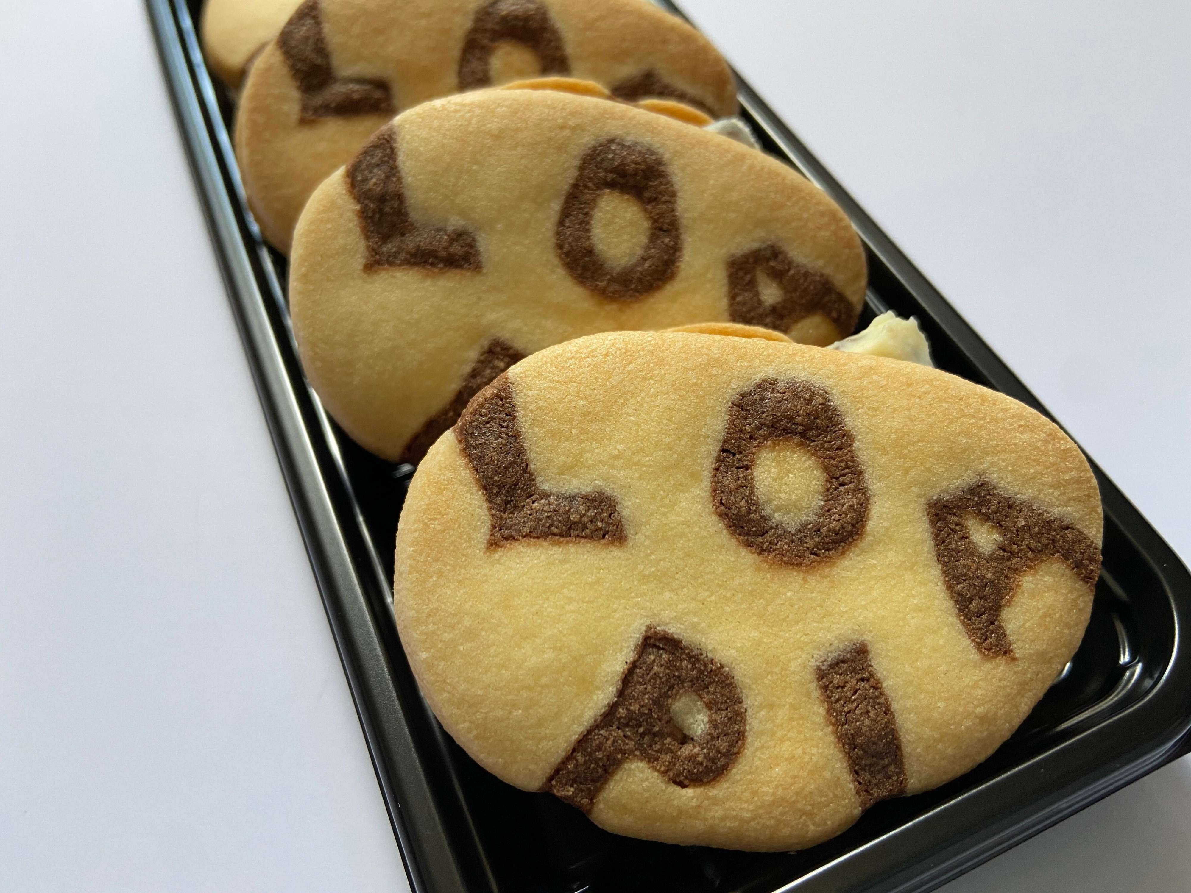 海苔巻きでも入っていそうなお惣菜用のパックに入った、「LOPIA」のロゴ入り焼菓子!とっても個性的です。