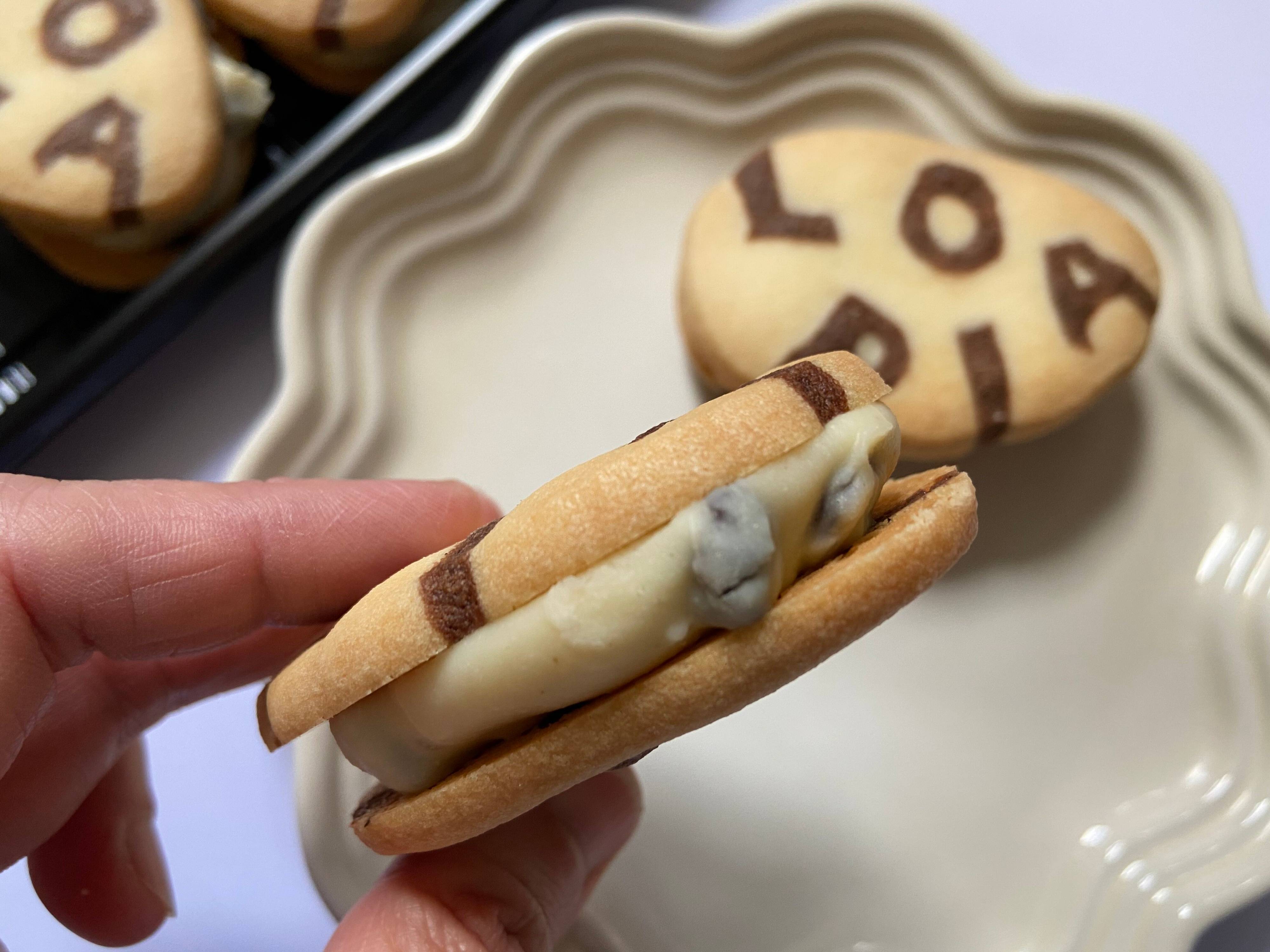 バターたっぷりでサクサクのクッキー生地は、商品名のとおり、リッチな味わい。中のクリームは、ホワイトチョコのコクのある甘さにラム酒が効いて、レーズンはジューシー。とってもおいしいです。