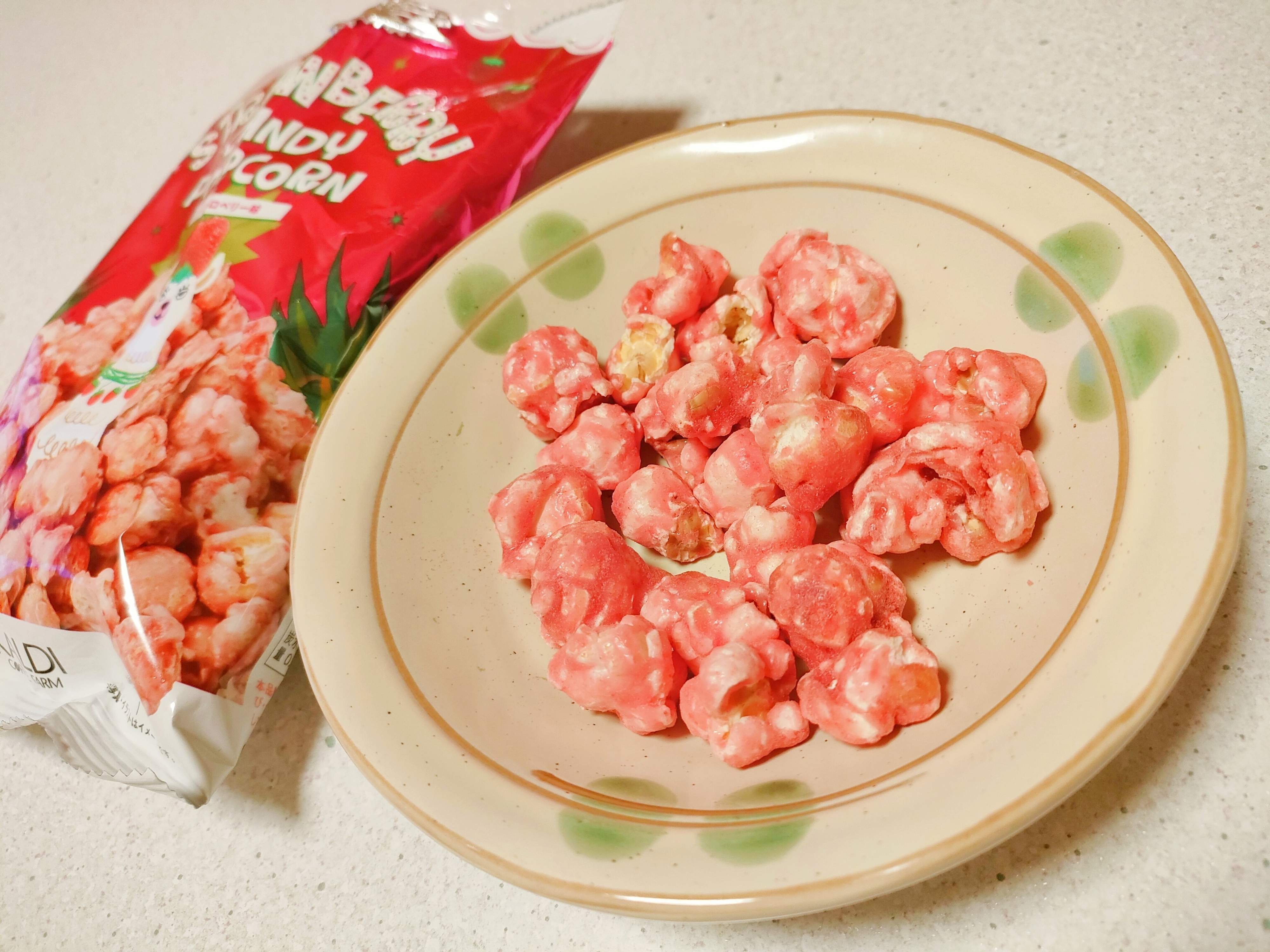軽やかでクリスピーな食感のポップコーンと説明書きにありましたが、まさにその通り。さくさくとしたポップコーンはそのままに、ストロベリーコーティングが味を引き立てています。