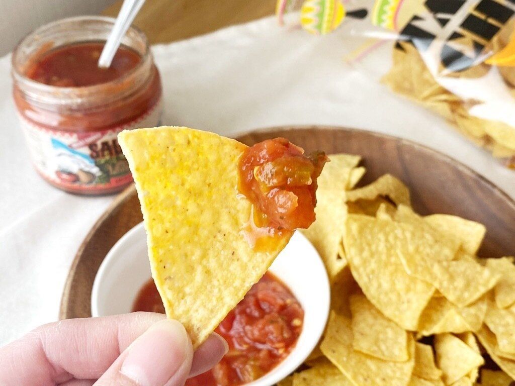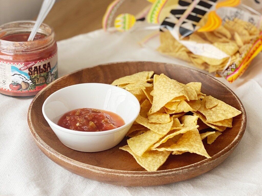 そのまま食べても十分おいしいタコスチップスですが、別売りのサルサソースと合わせると、全く別の味わいを楽しめるのでオススメ。