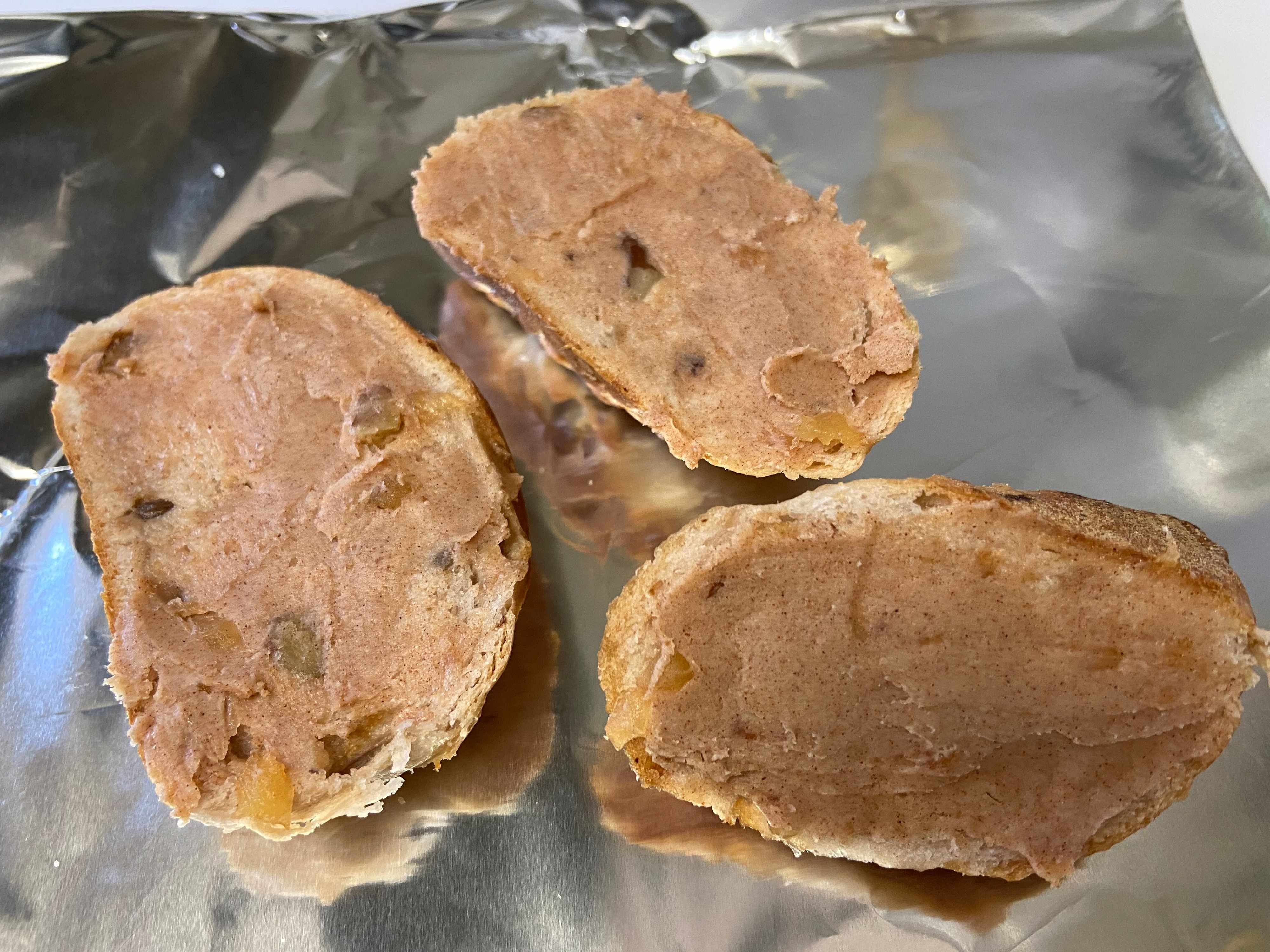 こんがりおいしそうに焼けました。アップルパイバターがじゅわっとパンに染み込んで、りんごの甘酸っぱさとシナモンのスパイス感が絶妙です。