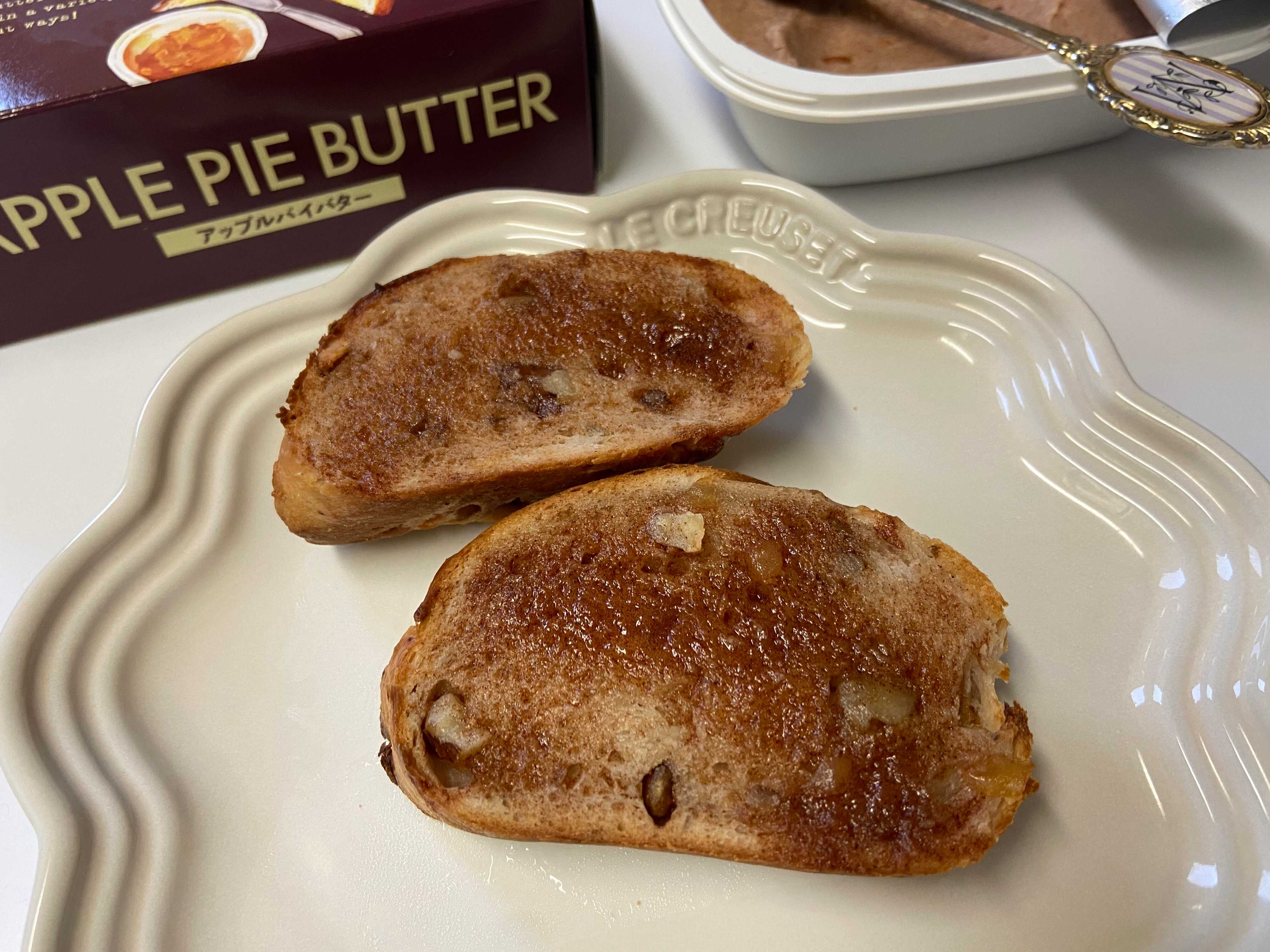 りんごは果肉も入っているので、まさに「アップルパイ」な雰囲気!今回はくるみ入りのバゲットに塗ってみましたが、食パンやクロワッサンに塗ってもおいしいですよ。