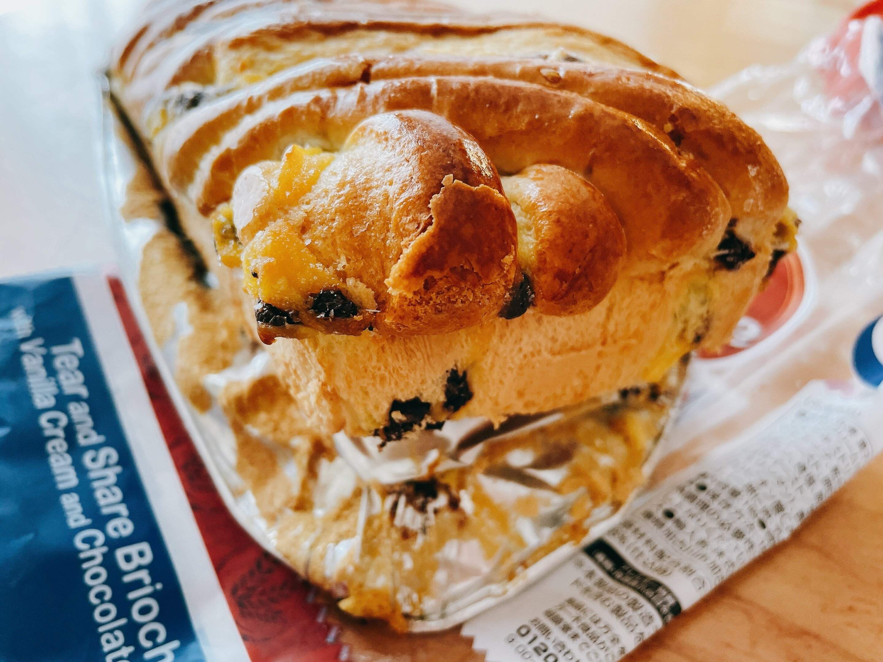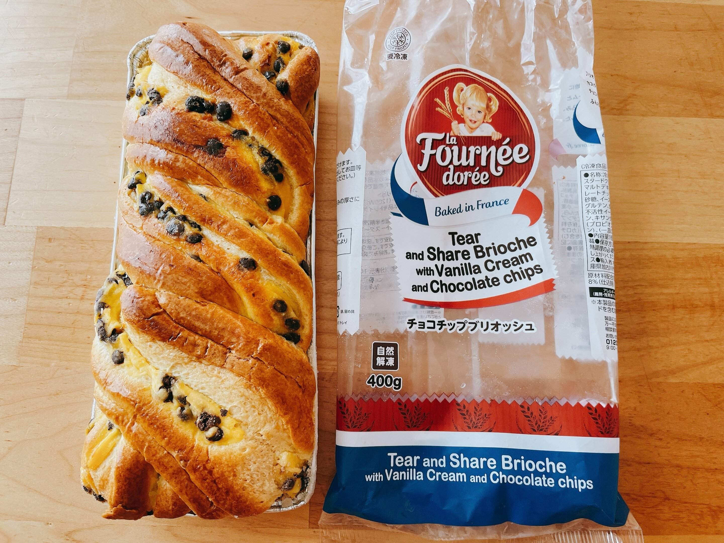 フランスからの輸入品で、ブリオッシュ生地に、チョコチップとカスタードがたっぷり練り込んであります。