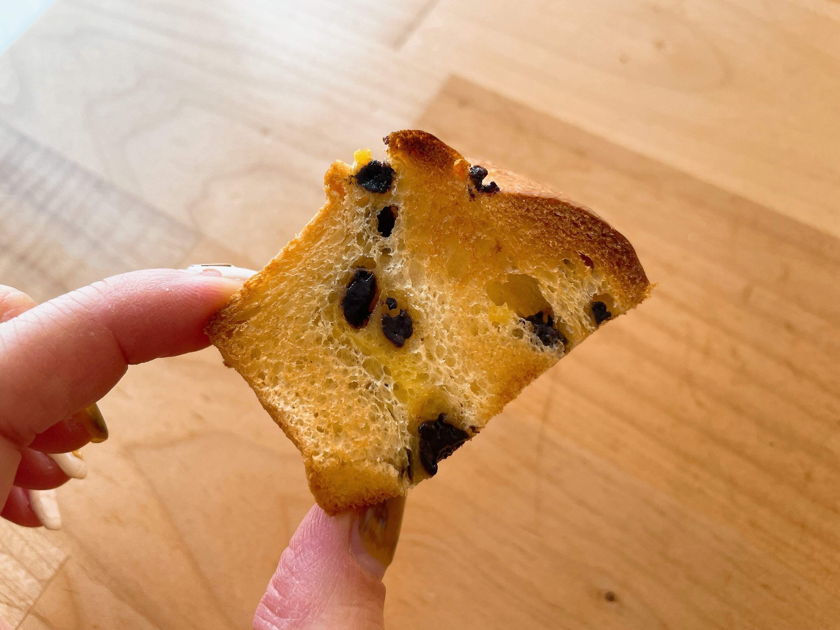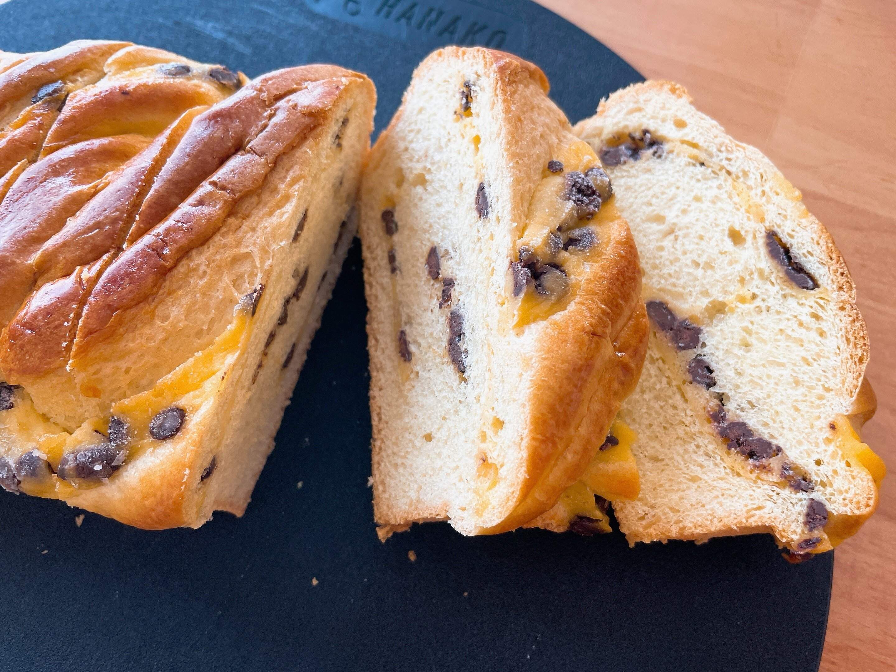 生地はふわふわで、バターの香りがしっかりして、カスタードとチョコチップの甘い部分とすごく馴染んでいます。