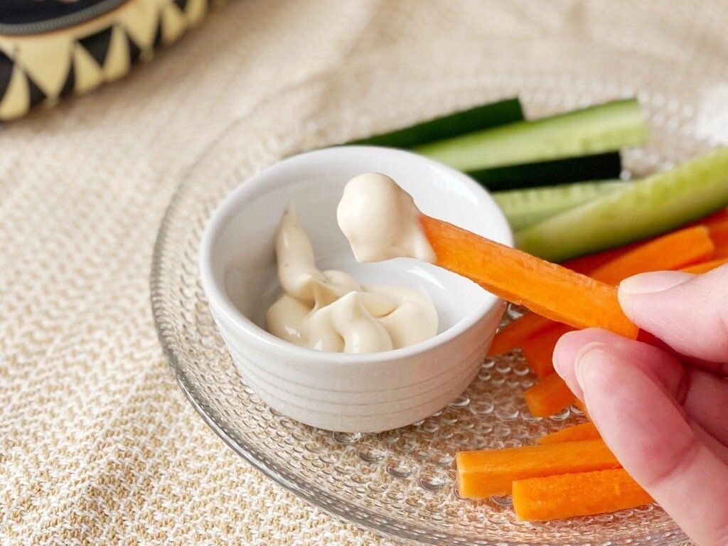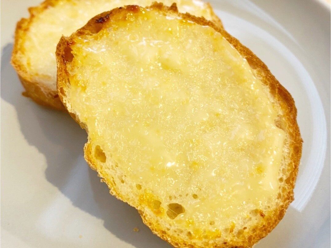 ニンニクの風味が効いていて、マヨネーズのコクと少しの酸味が絶妙なバランス。パンや野菜にディップするだけで十分おいしいですが、チーズと合わせてトースターで焼くとコクと風味がアップし、さらに濃厚な味わいに仕上がります。