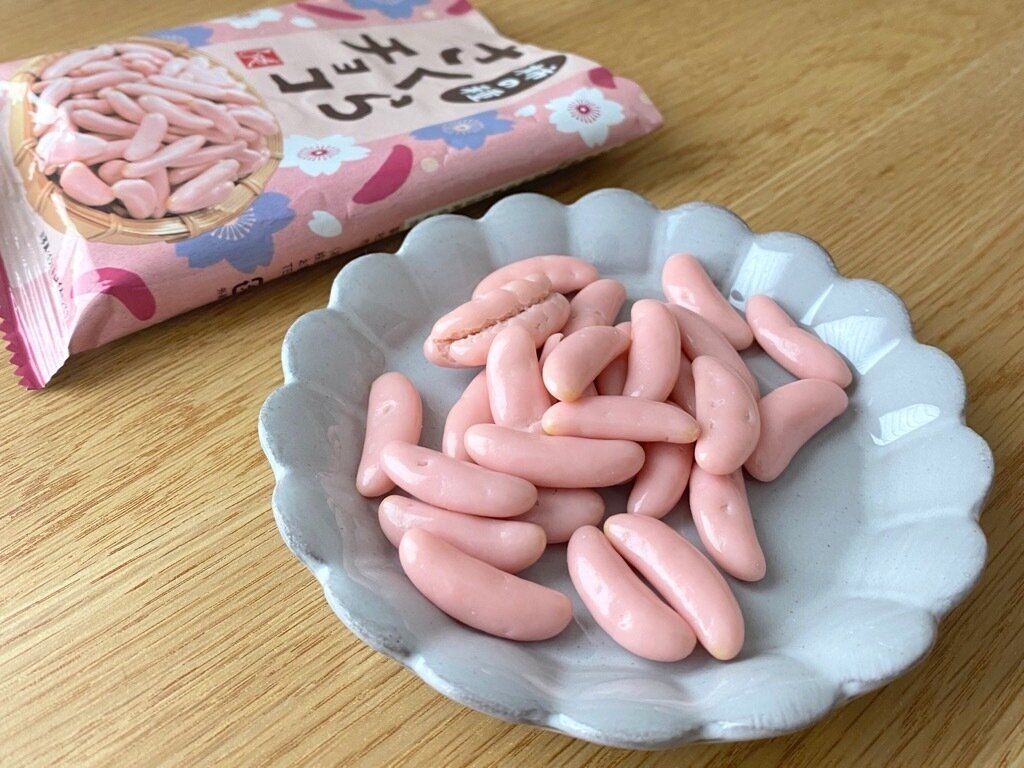 一般的な柿の種のようなカリカリっと軽い食感で、チョコレートの甘さと柿の種のしょっぱさがよく合います。ほんのり香る桜と後味に感じるお米の風味も相性抜群。味も食感もクセになり食べ始めると手が止まりません。