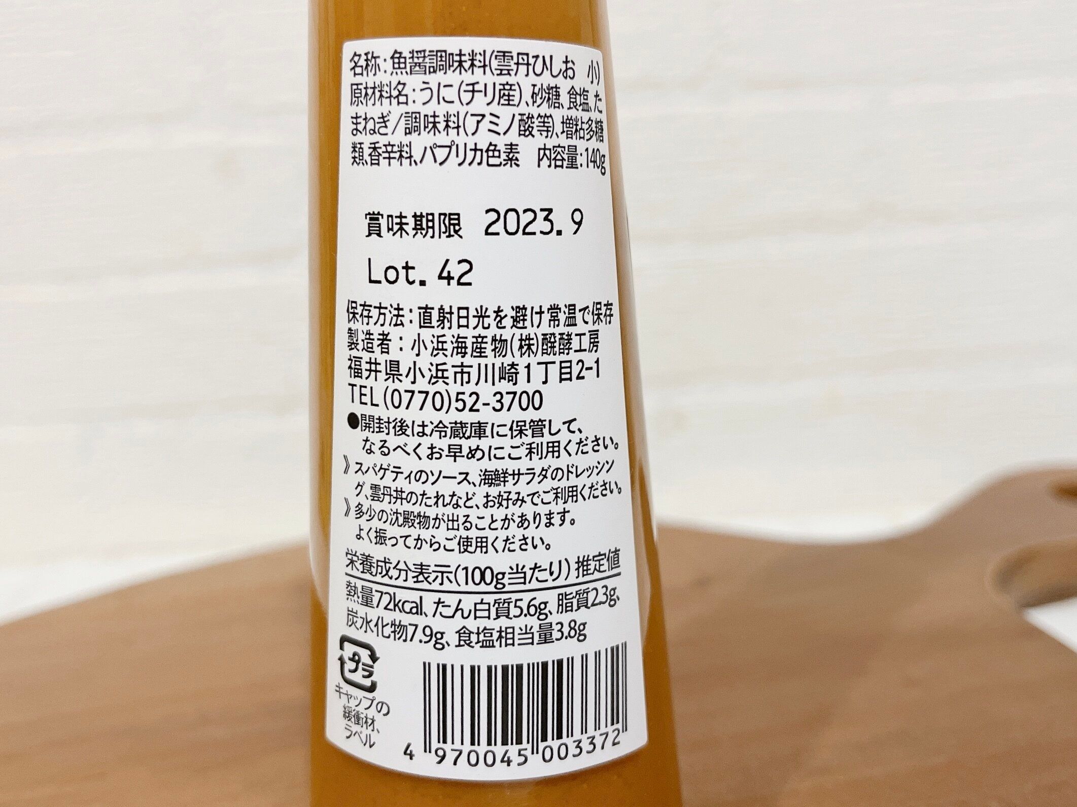 同じような「魚醤」などの商品は塩気が強めの商品が多いイメージがありますが、カルディの雲丹醤は塩気が強すぎず、マイルドなのでウニ本来の旨みが引き立ち、とっても美味しいです。