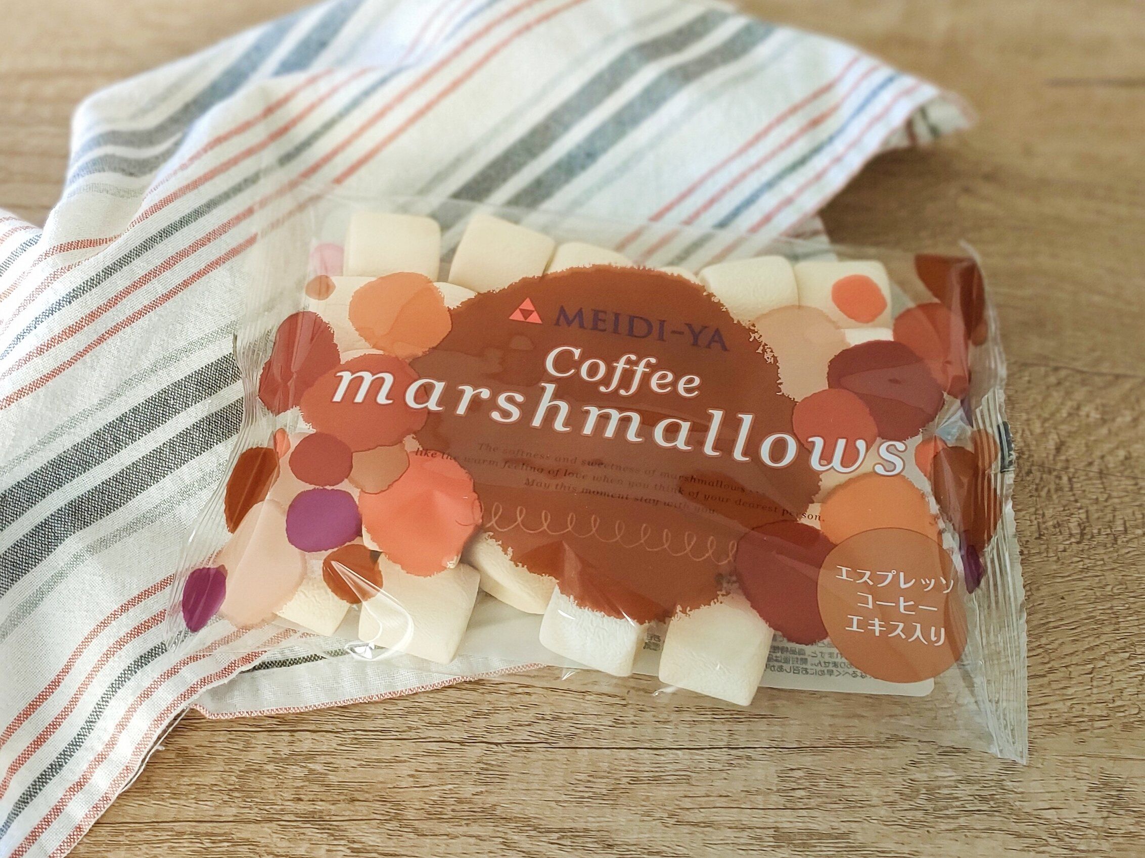こちらも引き続き明治屋から販売されている「コーヒーマシュマロ」172円です。