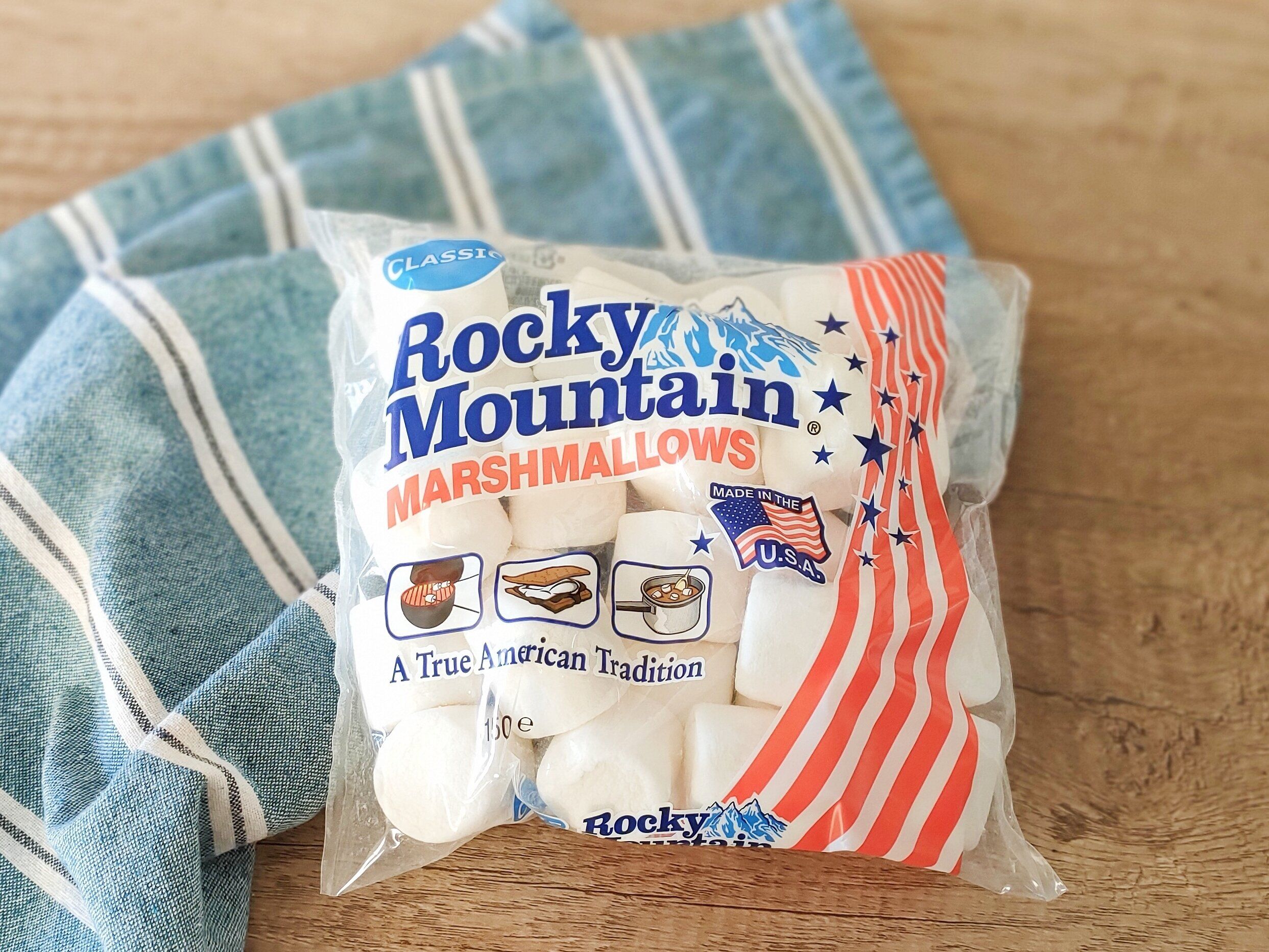 こちらはカルディのなかでも一番大きいサイズとして販売されている「ロッキーマウンテンマシュマロ」280円です。150g入っている大容量版!もちろん、中に入っているマシュマロもかなりのビッグサイズです。