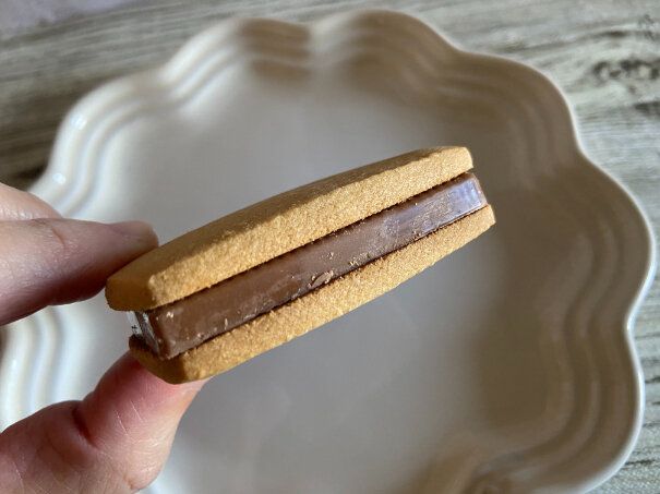 一見小さいクッキーサンドに見えますが、食べてみるとずっしり濃厚で食べ応えのある一品。サクサクリッチなバター感とミルキーなチョコレートの組み合わせは最高です!