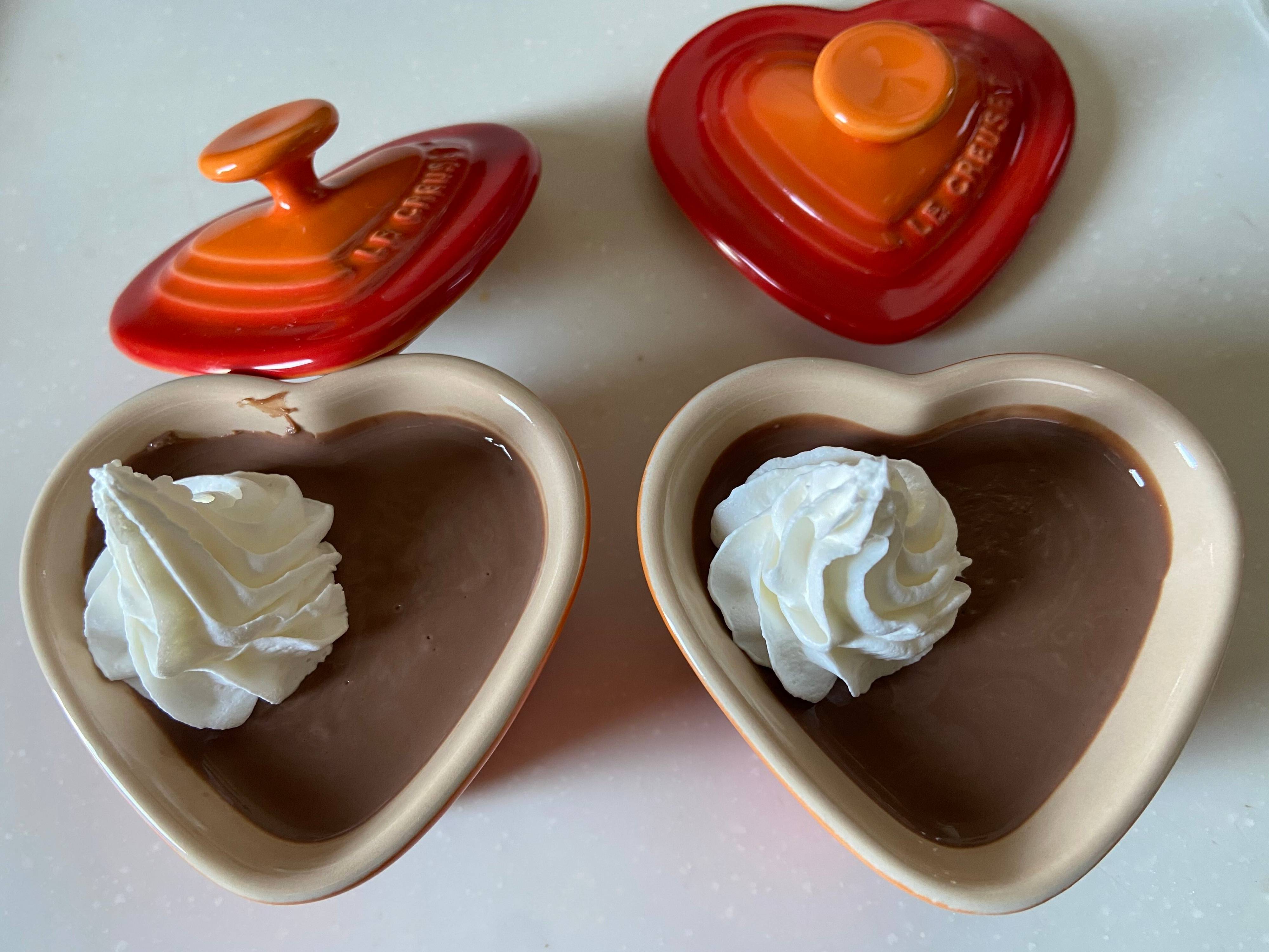 きれいに溶けたらお好みの器にチョコプリンを流し入れて、粗熱が取れたら冷蔵庫へ。冷えて固まったらホイップやお好みのフルーツ、ナッツなどを添えると見た目も豪華なかわいらしいスイーツに!