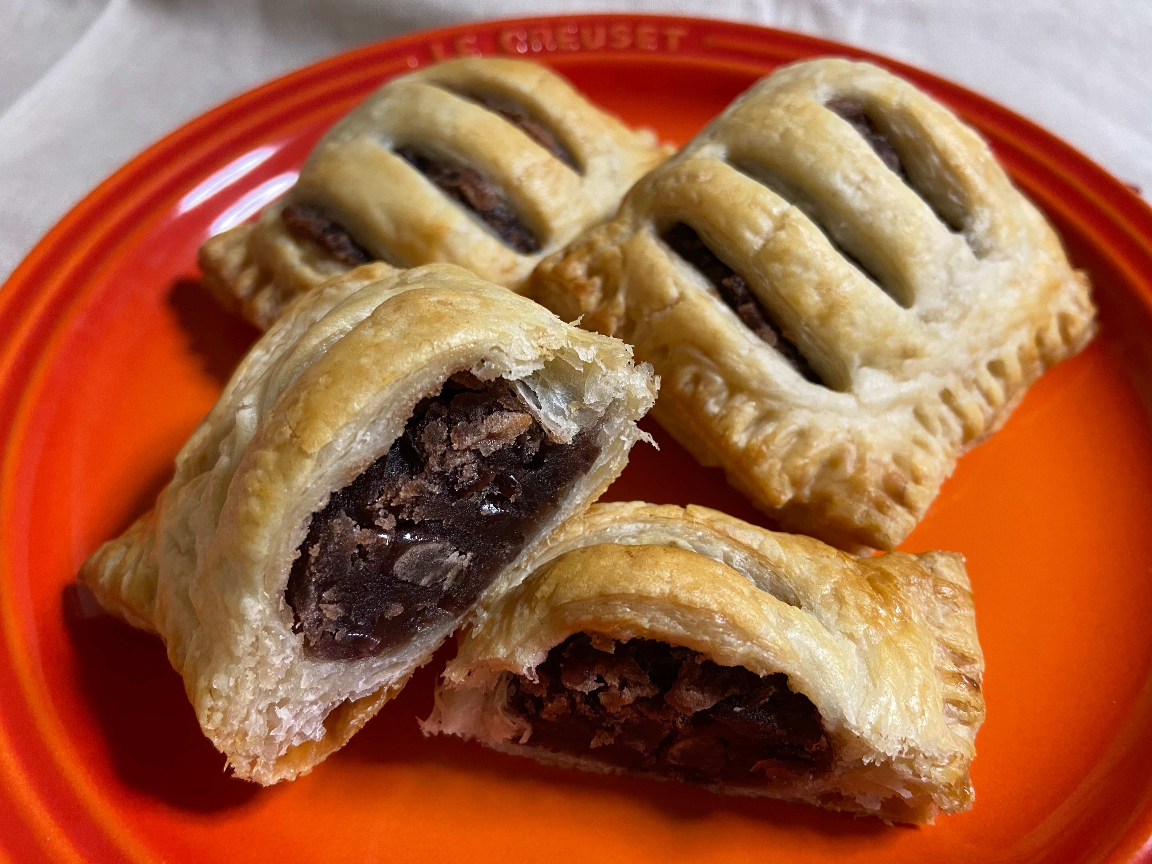 冷凍のパイシートで粒あんを包み、オーブンで焼きました。
