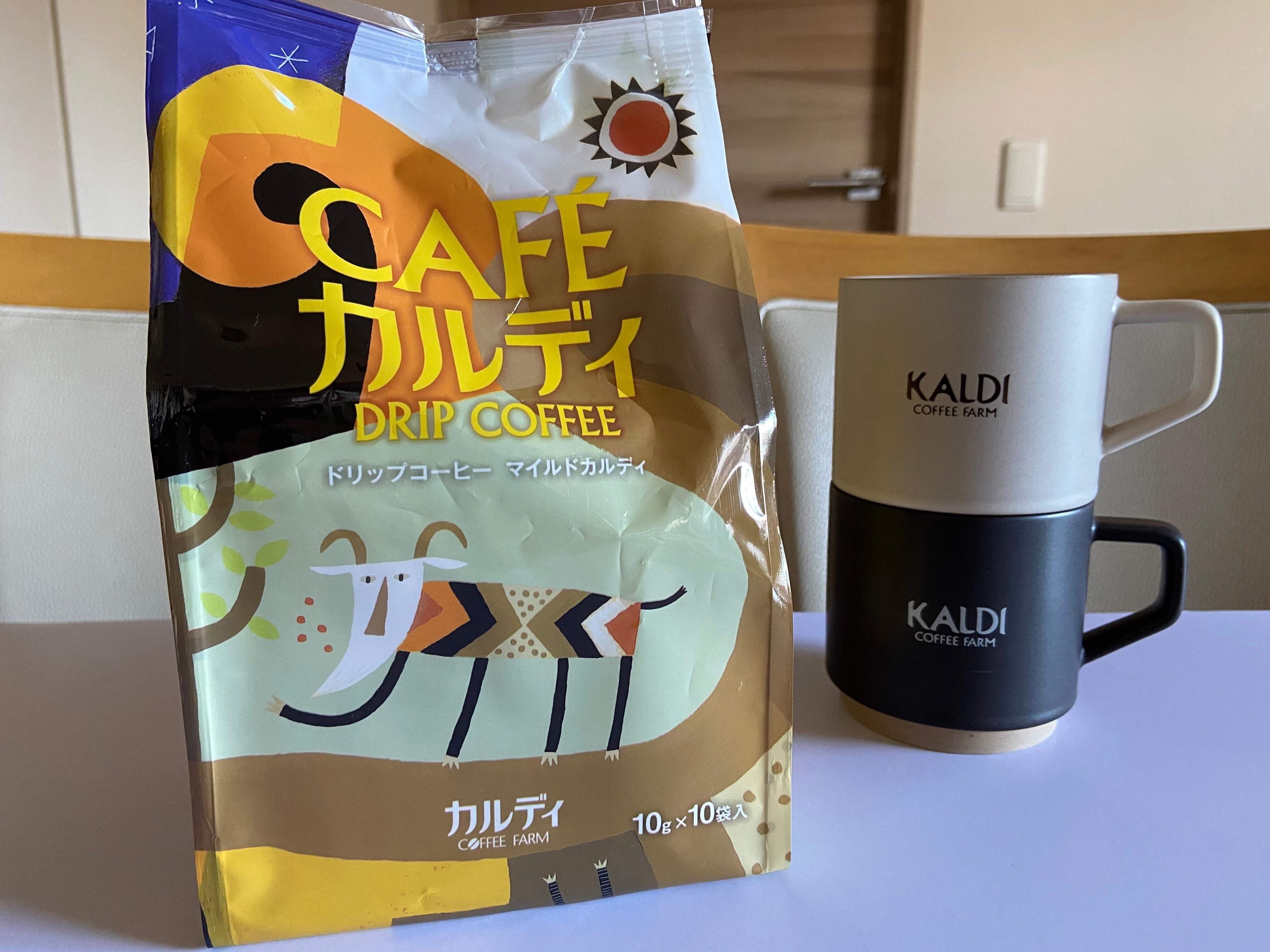 カルディで人気の高いオリジナルブレンドコーヒーの「マイルドカルディ」のドリップタイプ。カルディスタッキングマグカップにちょうどマイルドカルディの一杯分のドリップバッグがぴったり。合わせて使うのが便利です。