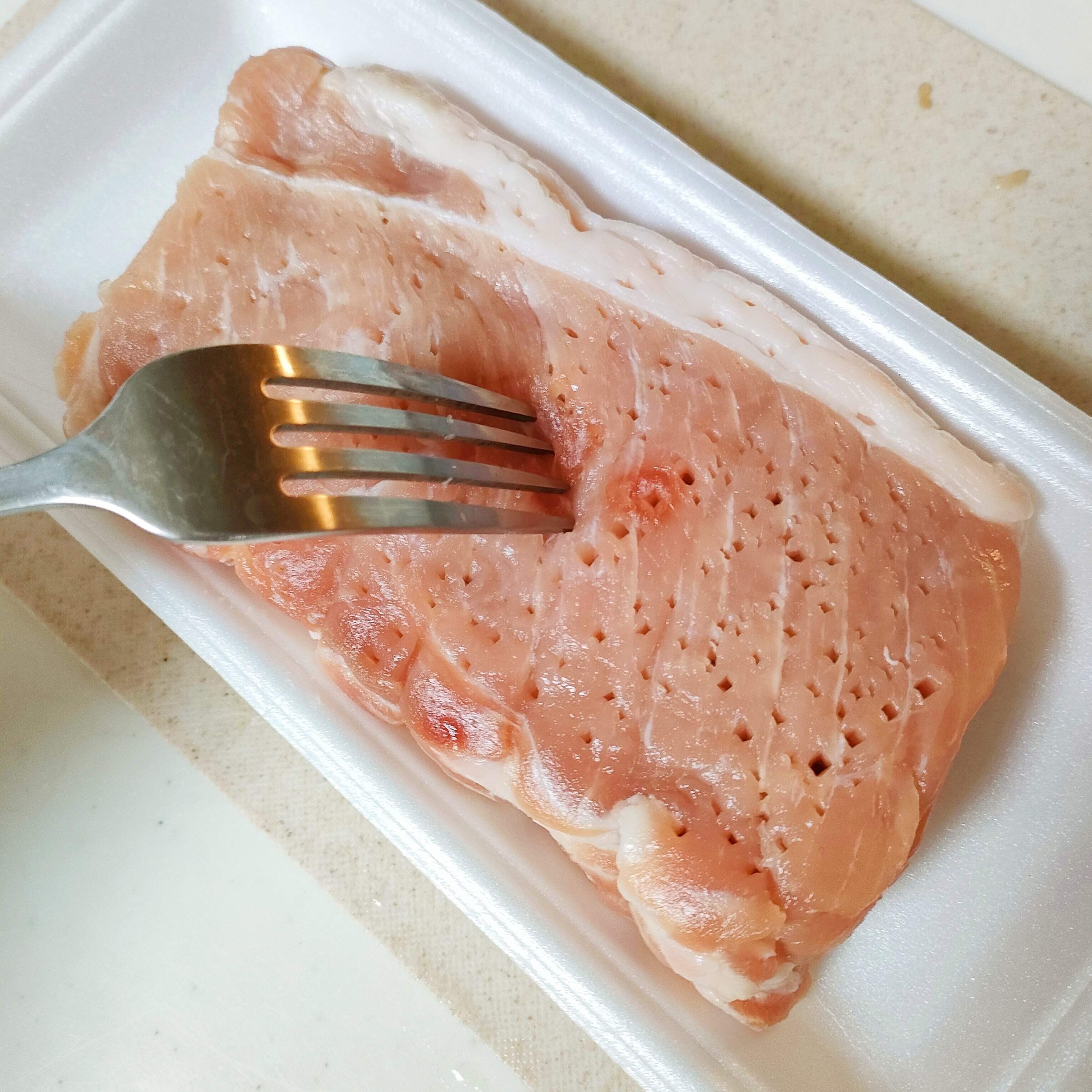 しっかりとした濃いタレの中に、かたまり肉を入れて、軽く揉むことで味を染み込ませます。また、パックに入れる前に、お肉にフォークで穴をあけるとさらに味が染み込みやすくなりますよ。