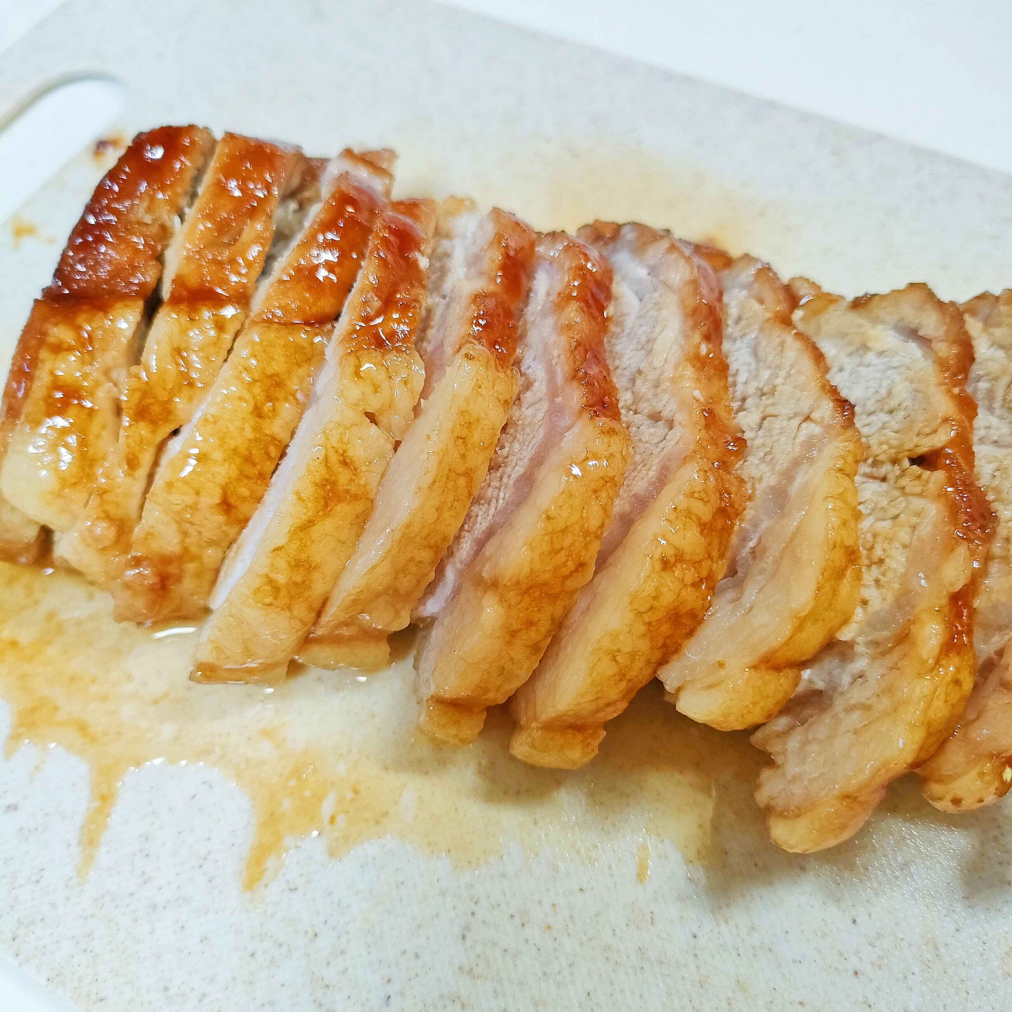 チンした後、そのまま庫内で約8分蒸らせば、ジューシーな本格焼豚ができあがります。