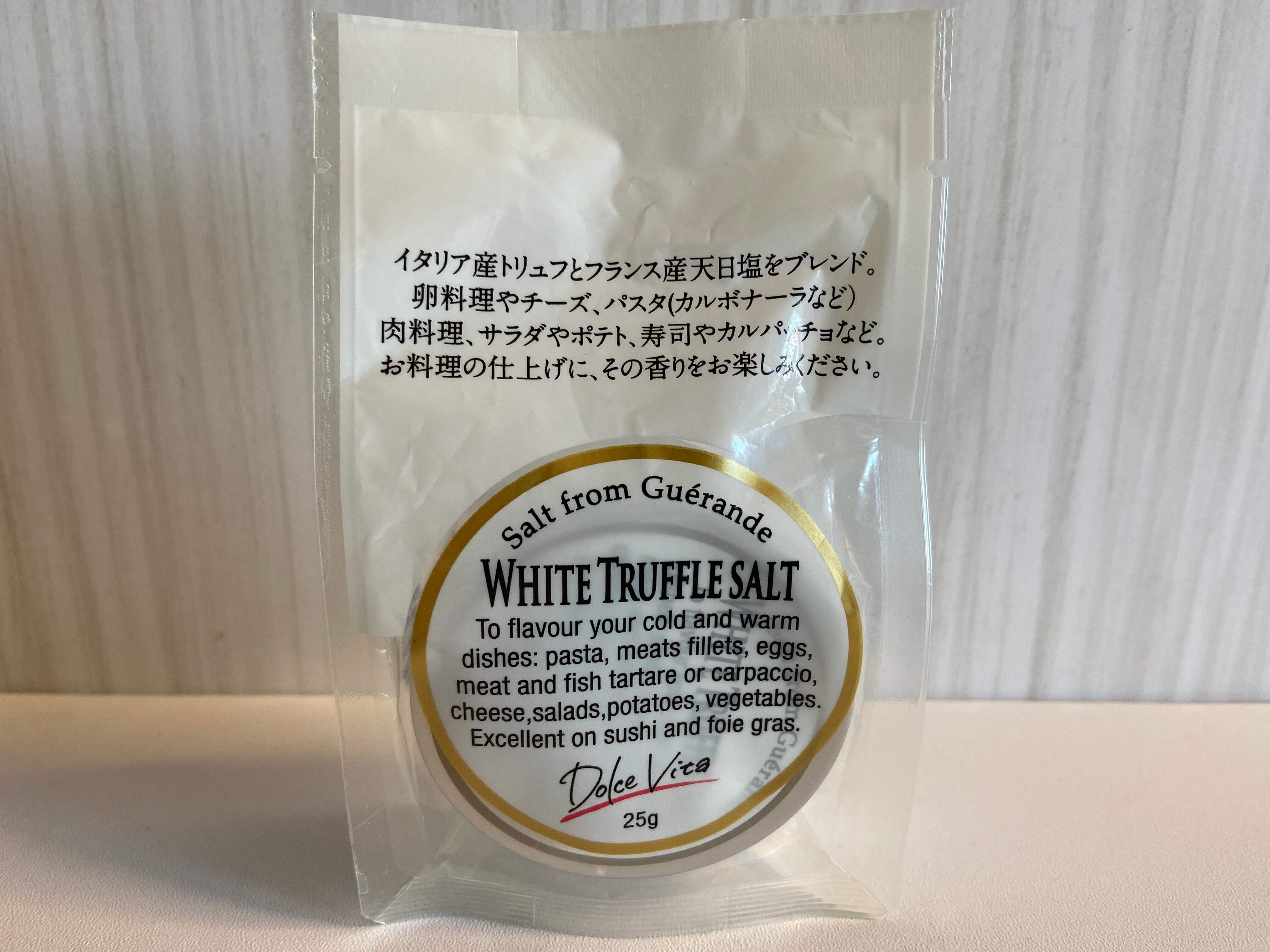 冬にしか取れない貴重な白トリュフを乾燥させて、天日塩と合わせた白トリュフソルト。黒トリュフよりも香りが強く、高級な白トリュフをいつでも楽しめるとしてファンの多い塩なんだそう。