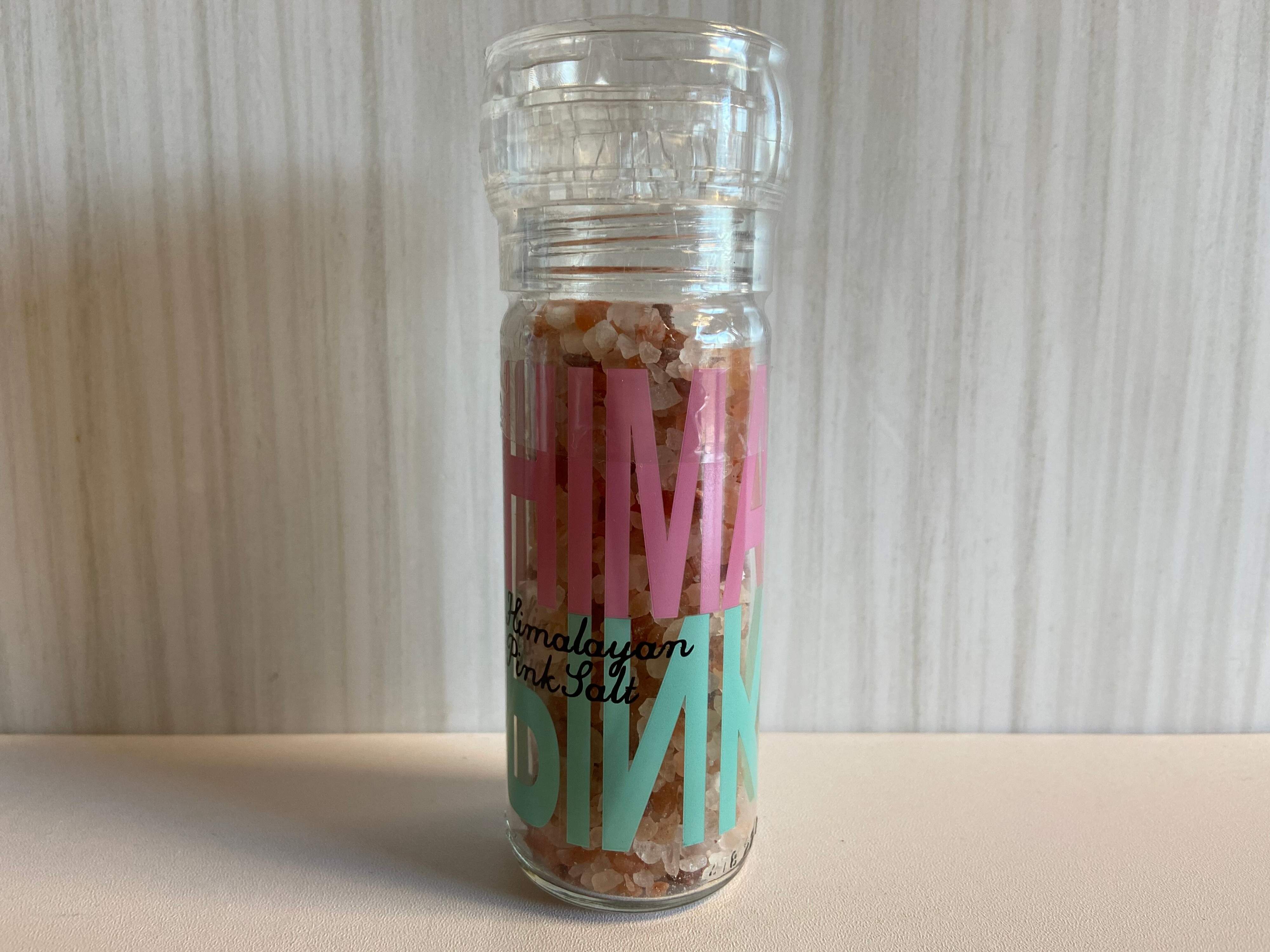 パキスタン産の天然岩塩。ピンク色の粗い粒の塩がボトルに入ってキッチンに置くだけでちょっとおしゃれに。