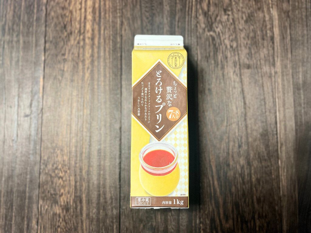 業務スーパーの看板商品の一つとも言える牛乳パックスイーツシリーズの商品で、1kgも入ったボリューム満点のプリンとなっています。